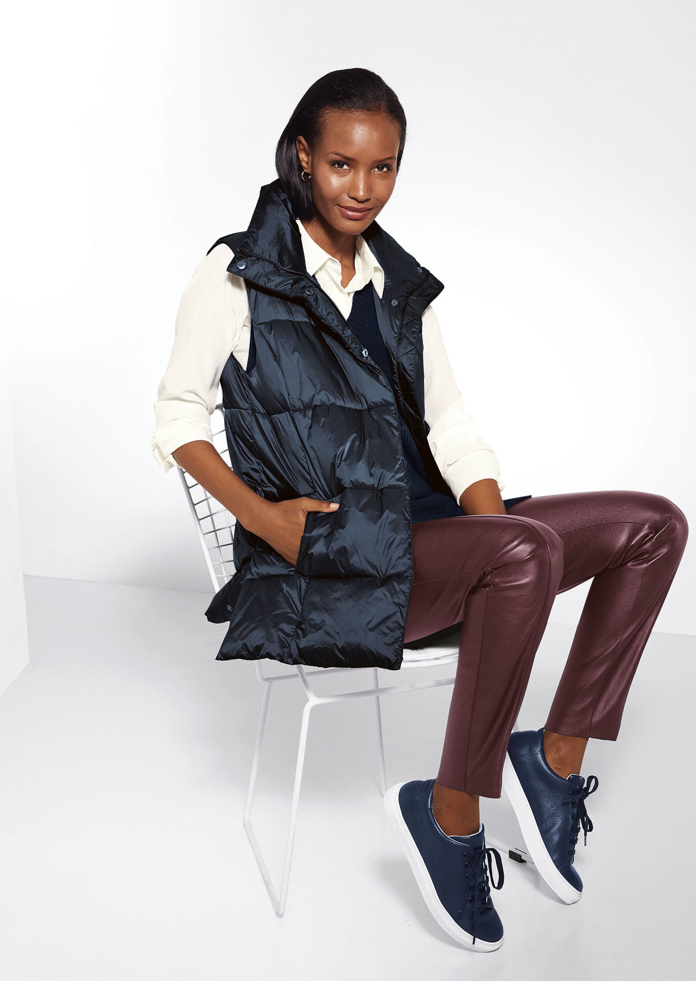 Très chic. Style sport tendance. Col montant à fermer haut et zip double curseur sous patte pressionnée. Poches sur les côtés. Fentes pressionnées sur les côtés. Cet article a été produit en préservant les ressources grâce à l'utilisation de matériaux recyclés.