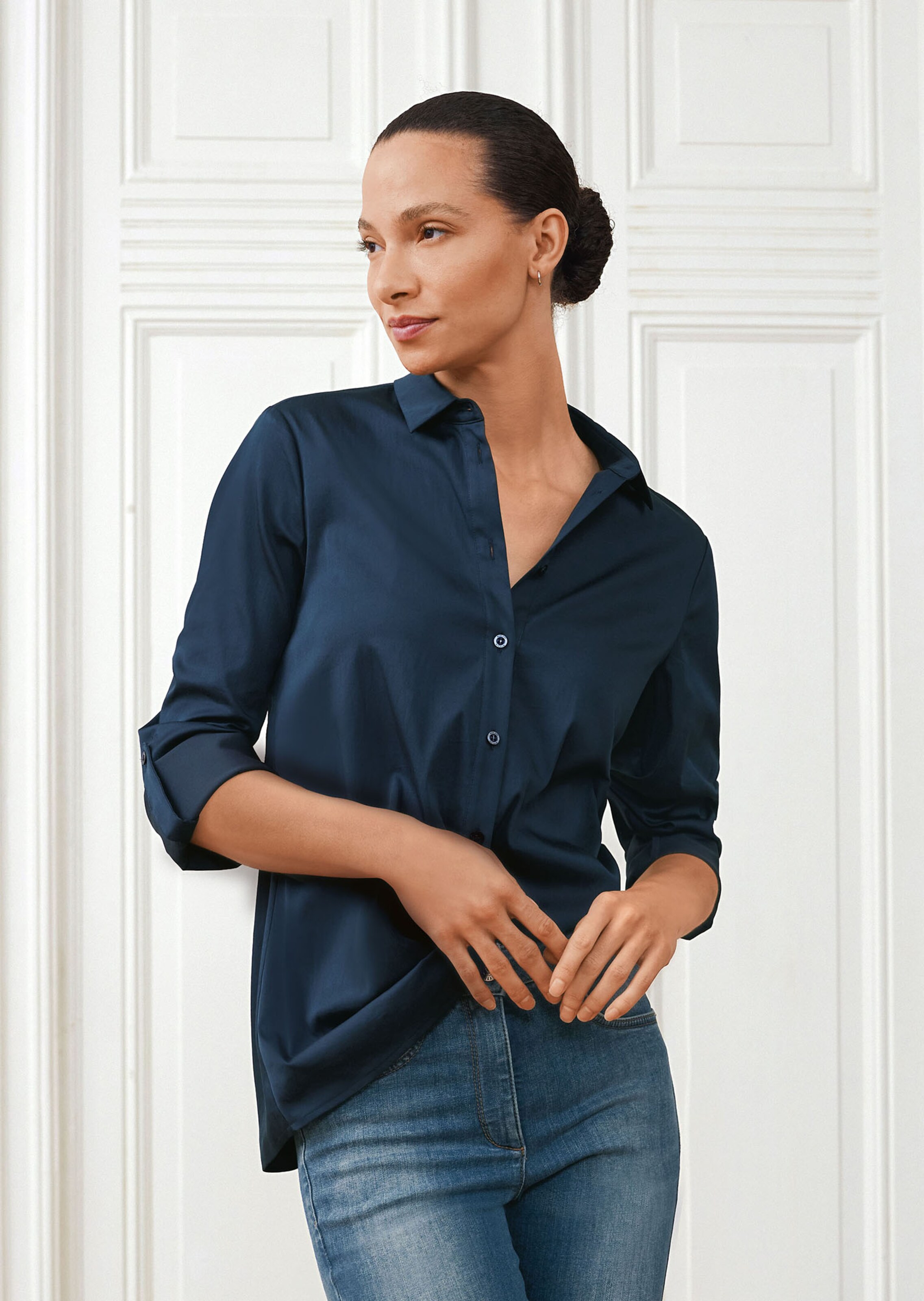Modèle classique. Coupe légèrement évasée, manches longues et base arrondie.