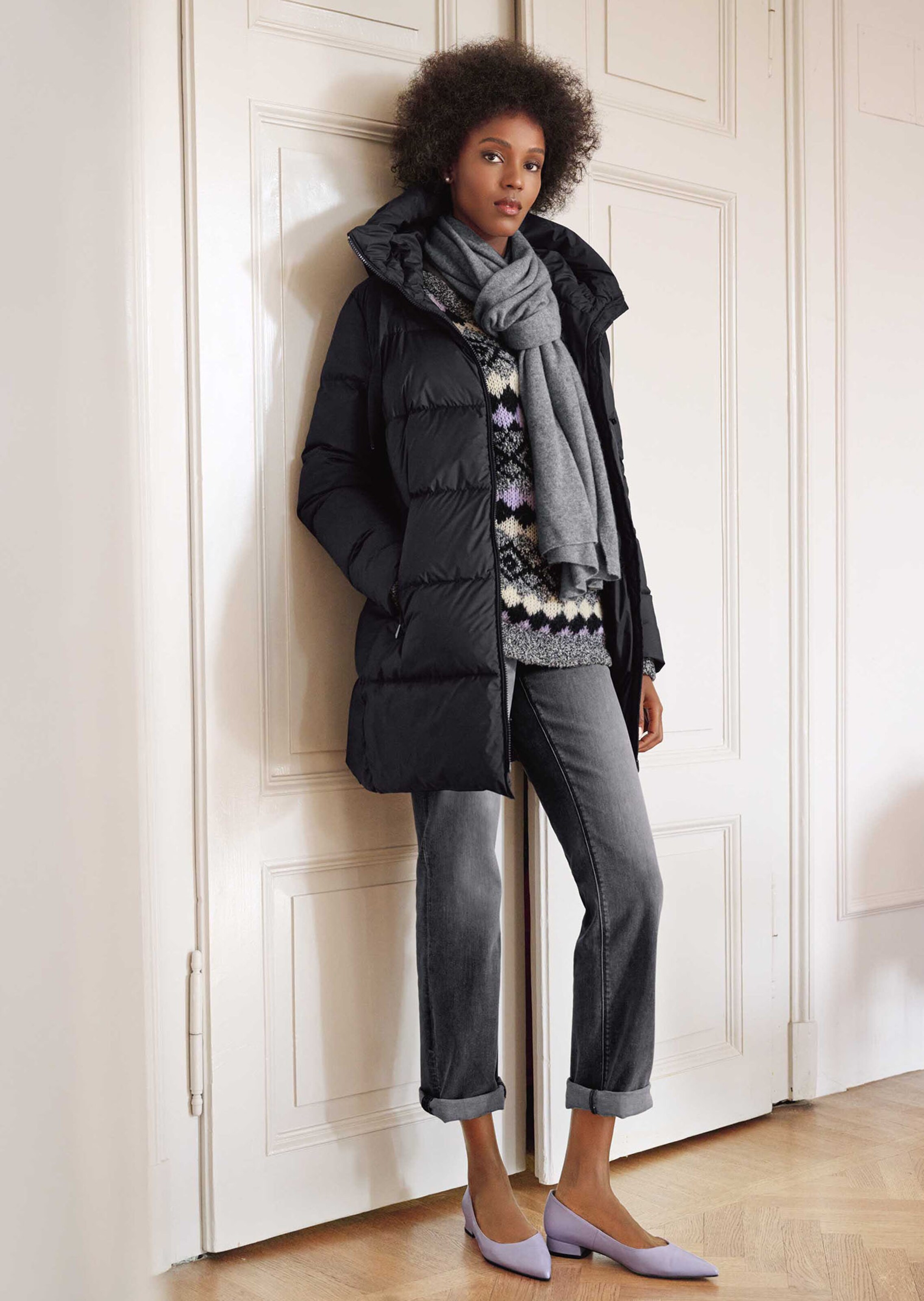 Ligne 5 poches à retrousser. Passants de ceinture et empiècement arrondi au dos.