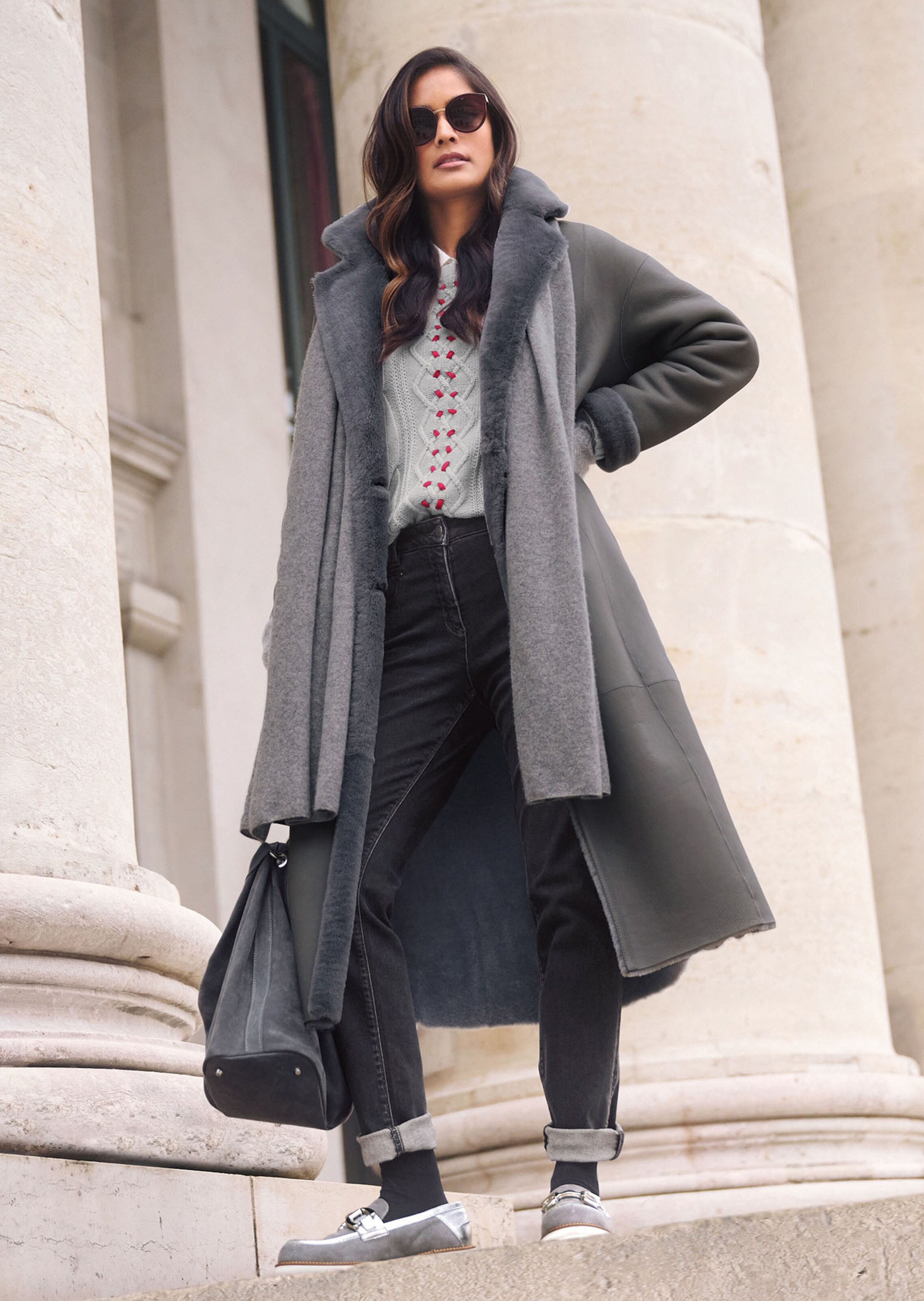 Ligne 5 poches à retrousser. Passants de ceinture et empiècement arrondi au dos.