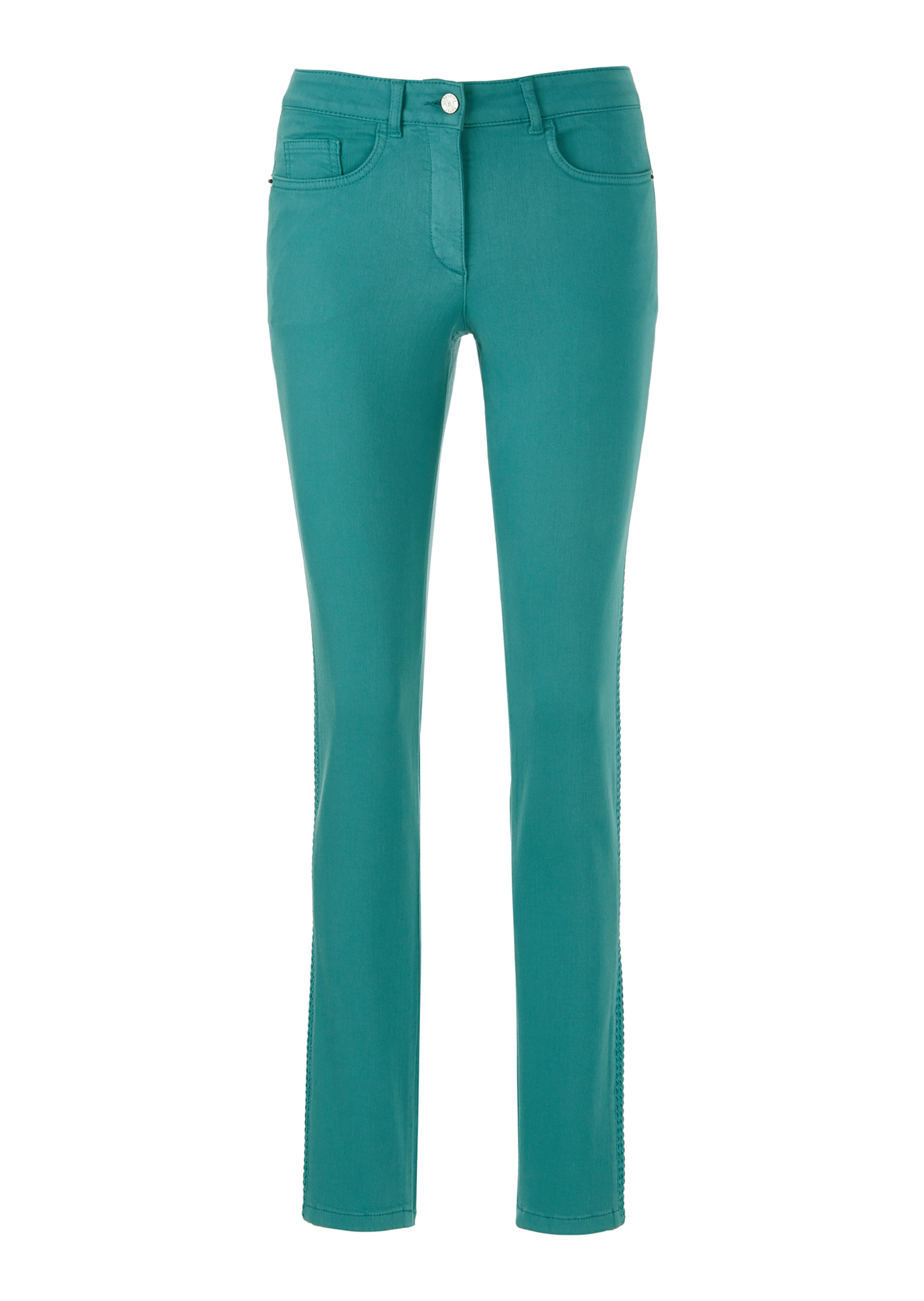 Coupe slim, 4 poches. Détail fantaisie le long des coutures latérales. Matière stretch confortable. Passants de ceinture et empiècement au dos.