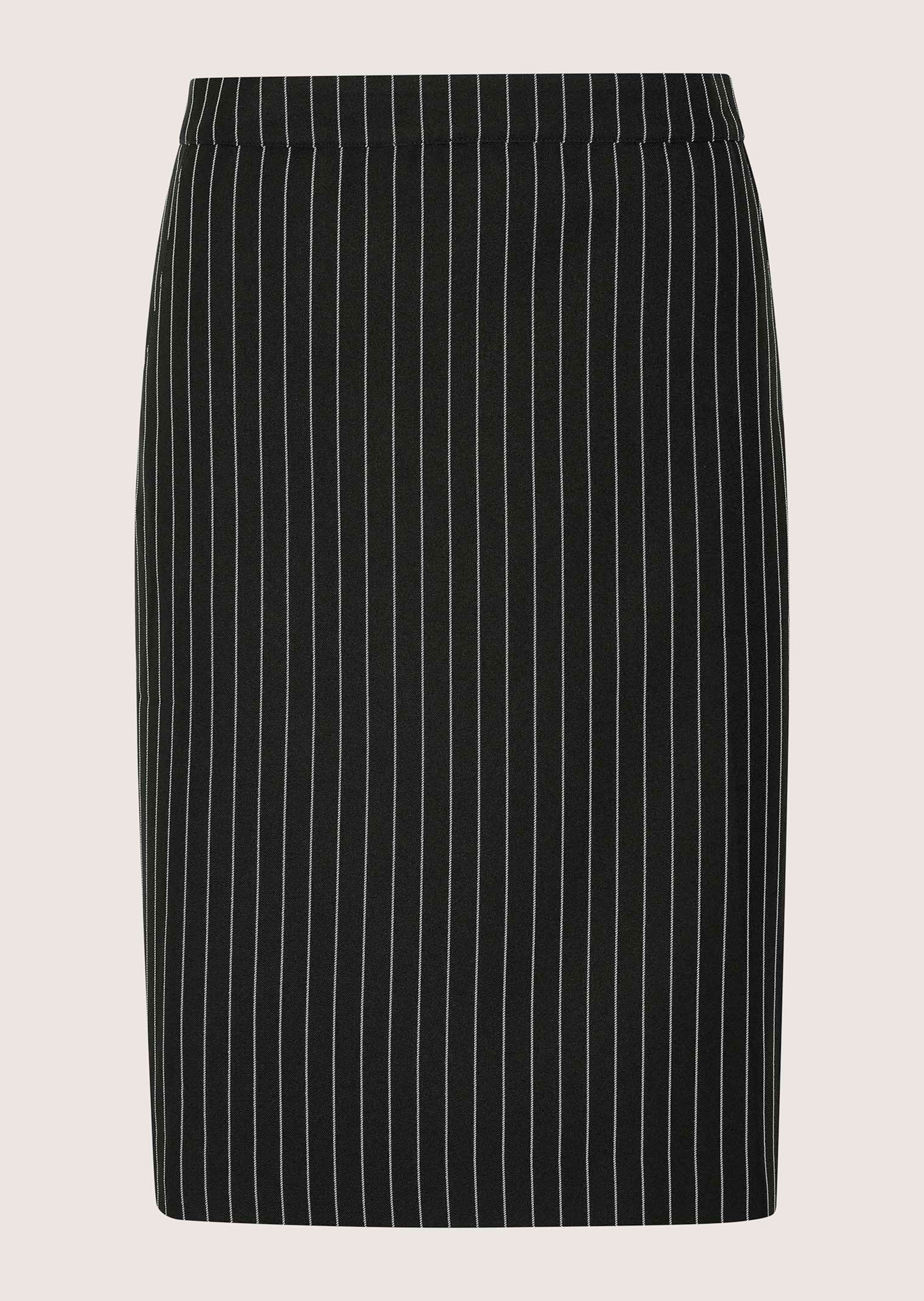 Très chic, avec coupe crayon et fines rayures. Jupe ajustée confortable grâce à la matière stretch. Poches, fente et zip au milieu du dos. Doublée.