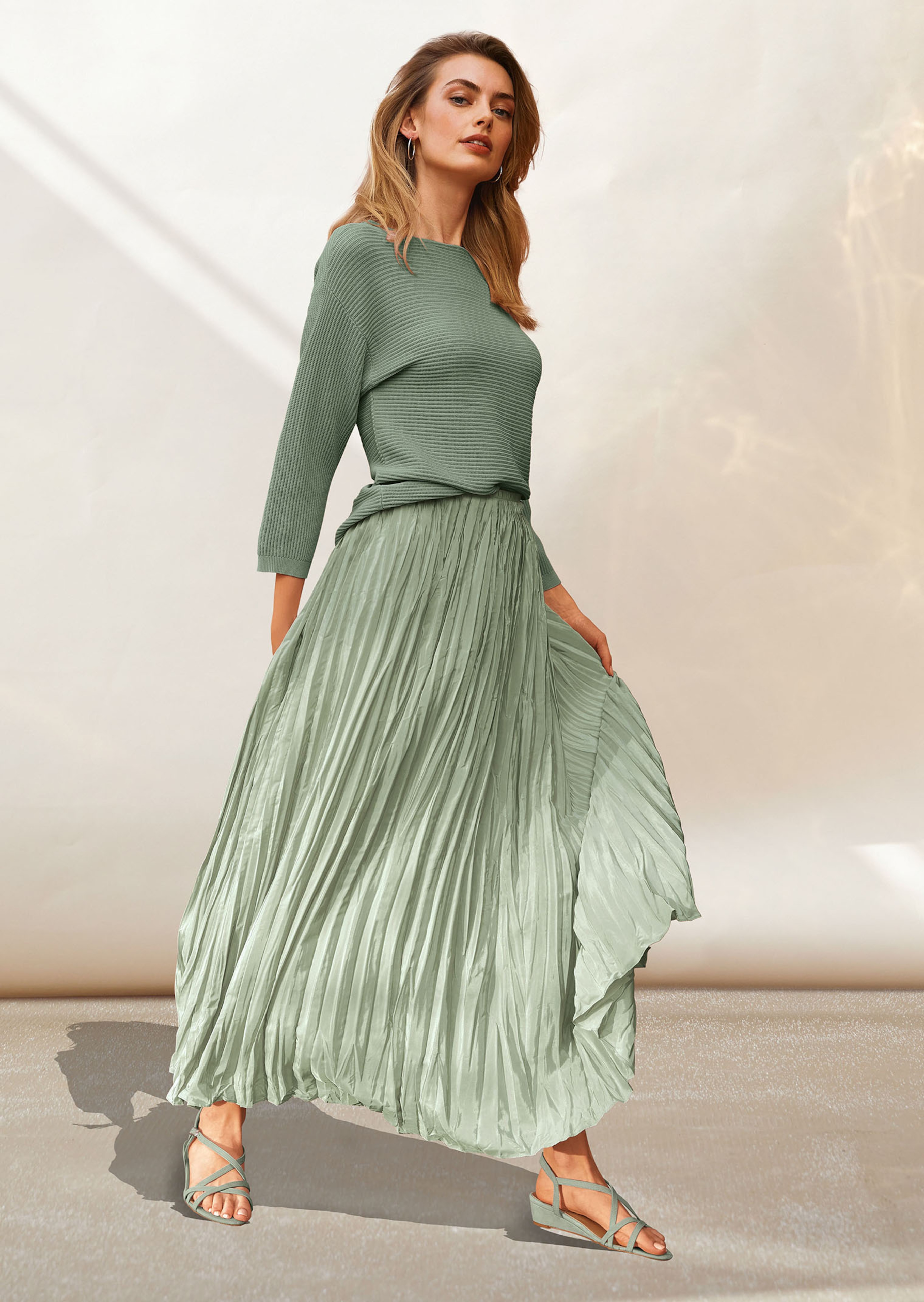 En plissé froissé. Coupe midi ample et évasée. Taille confortable.