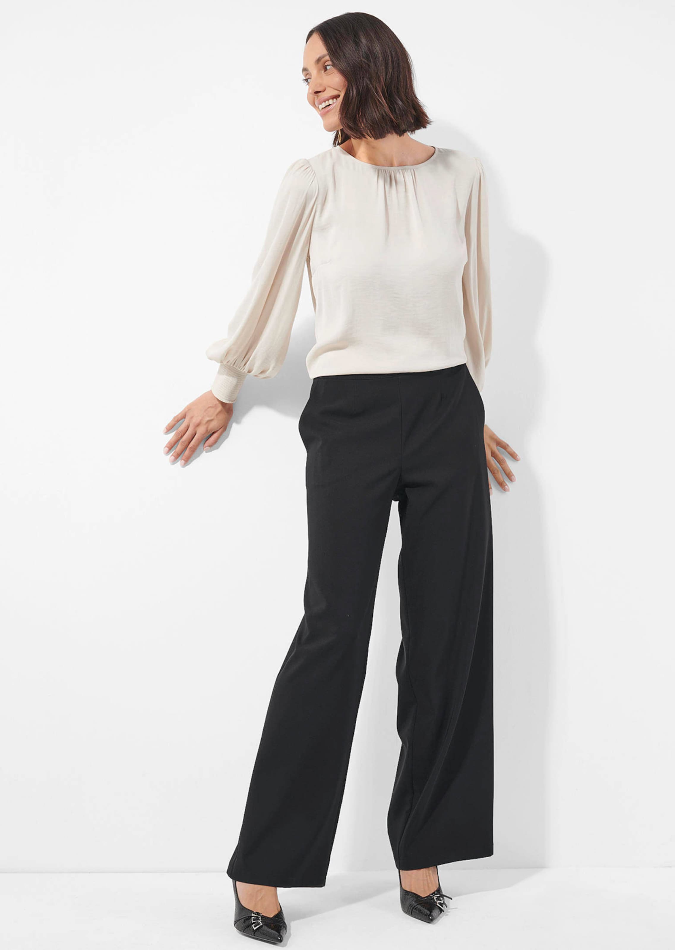 Hose von BETTY BARCLAY, die sich in angesagter Marlene-Form topmodisch präsentiert. Das weite Bein schafft den perfekten Ausgleich zur High-Waist-Leibhöhe, die besonders bequem ist und einen kaschierenden Effekt hat. Mit Reißverschluss und französischen Taschen. Innenbeinlänge in Gr. 38 ca. 80 cm. Saumweite ca. 58 cm. Styling-Tipp: Marlene-Hosen sind immer elegant und daher perfekte Kombipartner für schicke Oberteile wie Strickpullover mit leichtem Glanz. Für den Edel-Look auf hohe Stiefeletten achten!