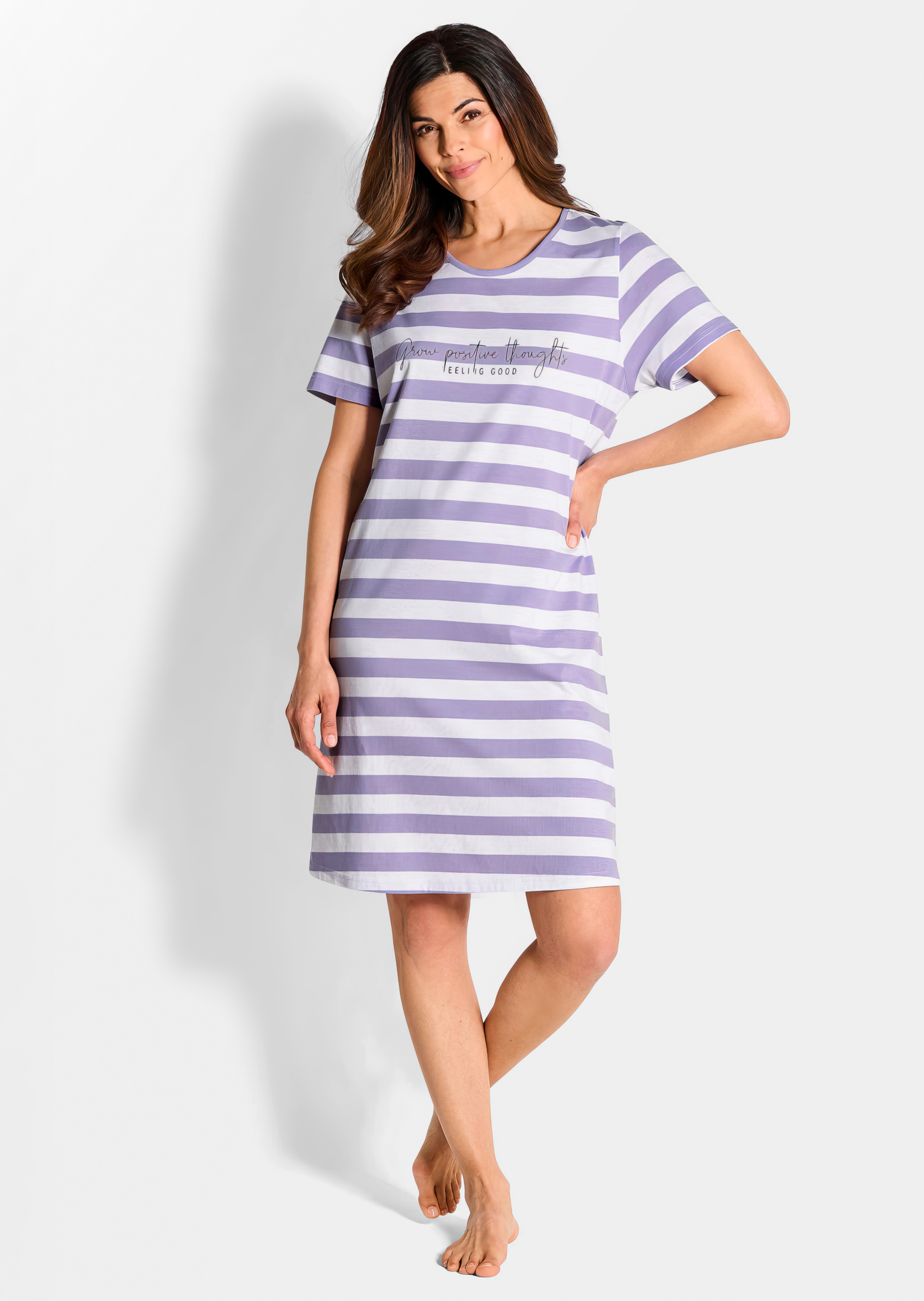 Chemise de nuit COMTESSA en lot de 2. Lot composé de 2 motifs différents ! Confections soignées en jersey agréable à porter avec teneur en coton. Coupe confortable à manches mi-longues. Un modèle avec encolure arrondie et l’autre avec encolure en V.