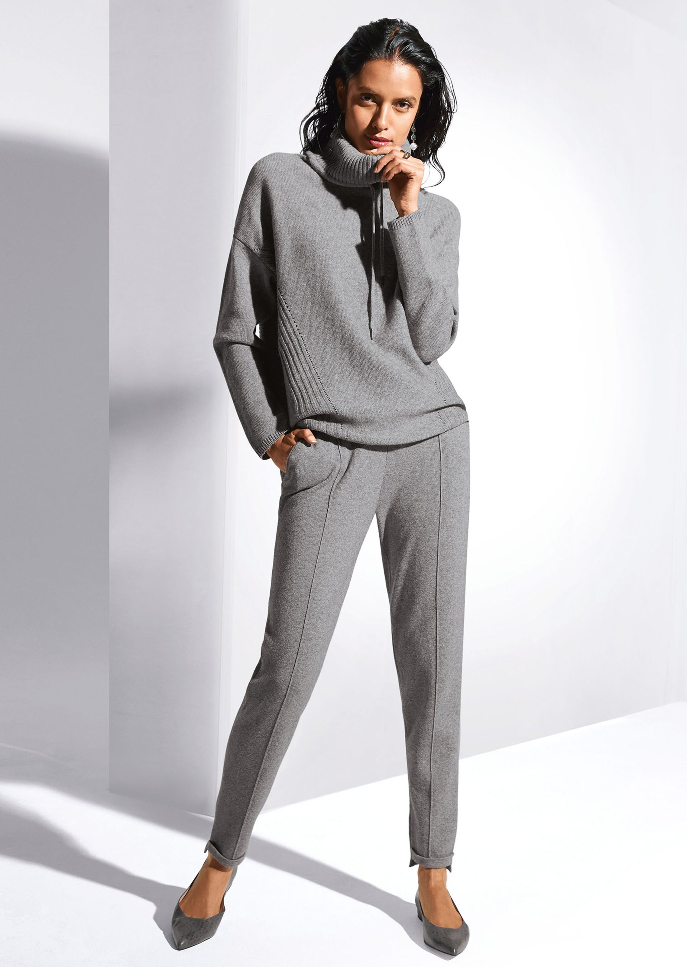 Un basique haut de gamme en belle maille d'une tenue irréprochable. Modèle confortable et décontracté. Large ceinture, plis nervures devant et poches côtés. Ruban coulissant avec extrémités en métal.