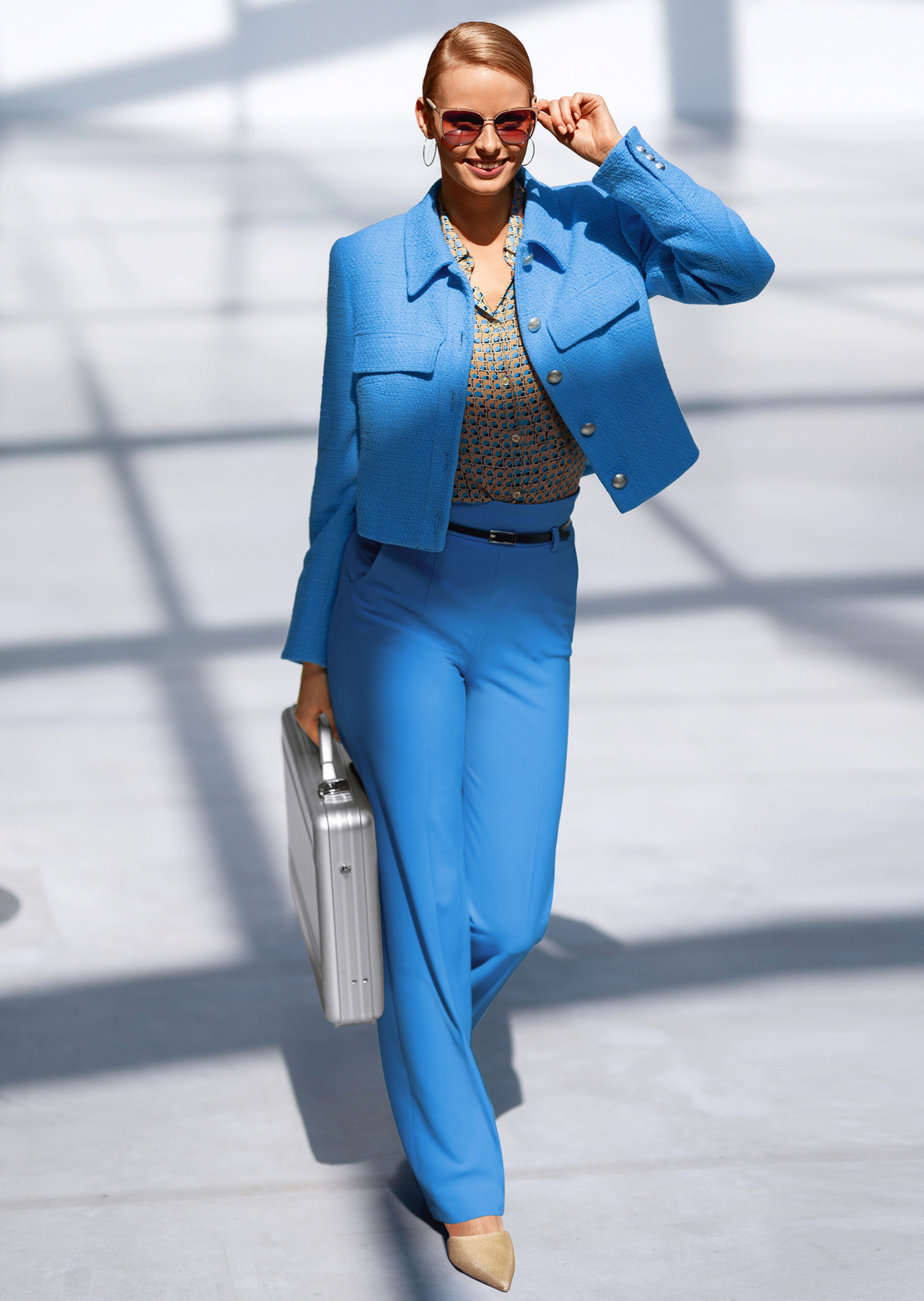 Taille haute large avec passants et ceinture en imitation cuir. Plis marqués et poches côtés. Crêpe fluide et facile à entretenir, avec des fibres de viscose LENZING™ ECOVERO™ issues d'une production durable. Zip latéral.