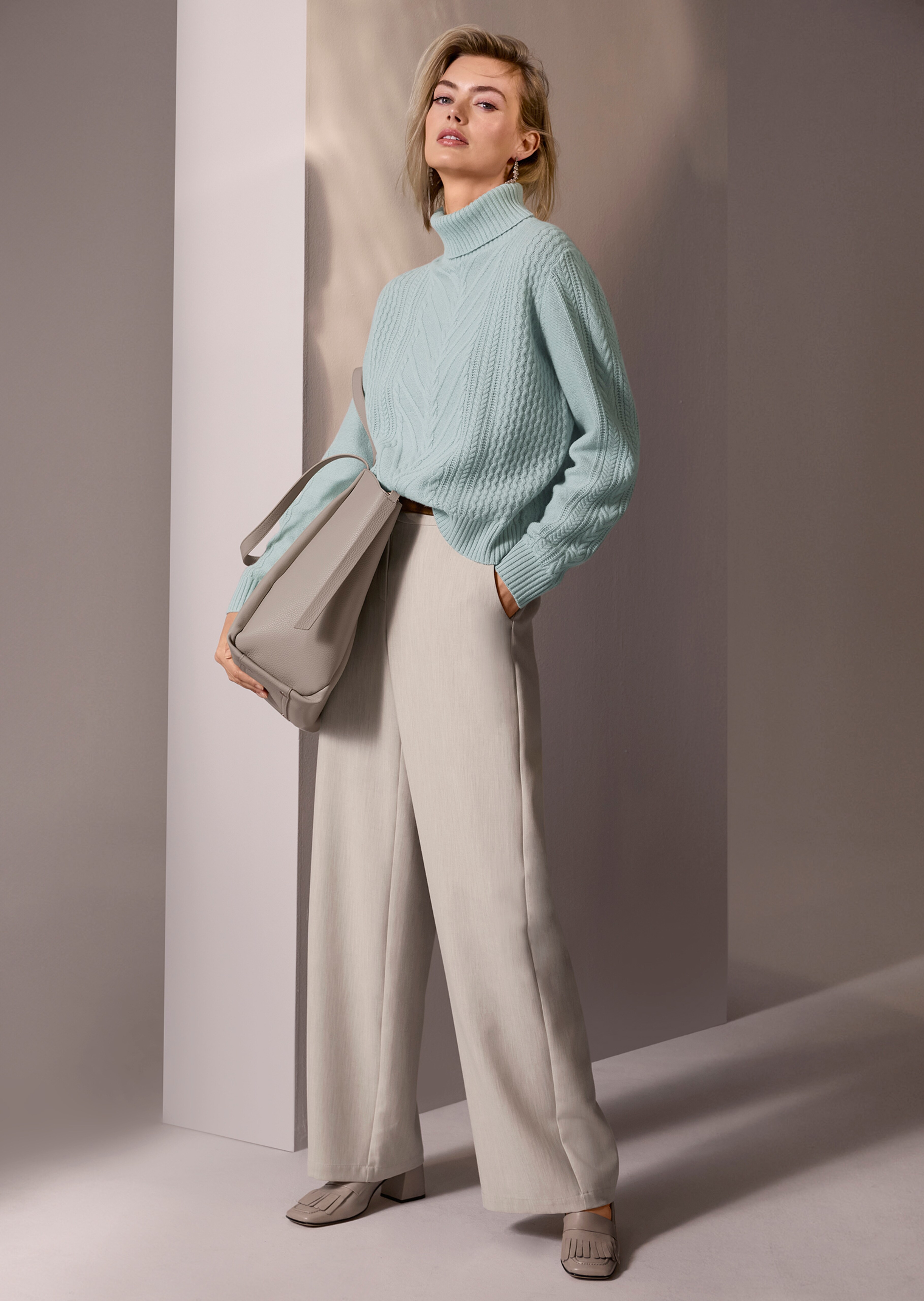 Fil luxueux doux et agréable sur la peau. Sublime jeu de motifs en maille torsadée. Coupe décontractée. Col roulé, manches longues et bords-côtes d'une tenue irréprochable.