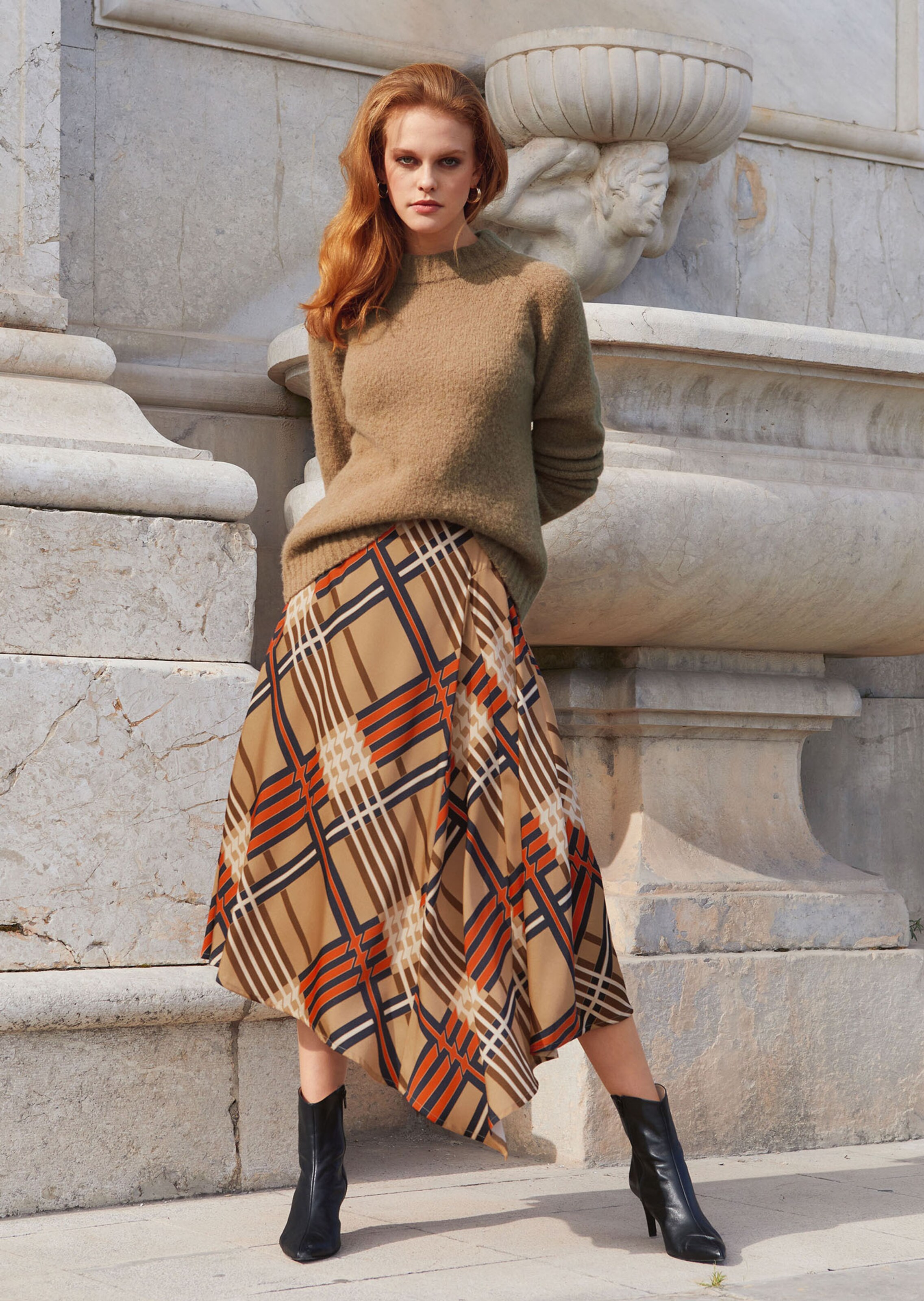 Maille duveteuse. Ligne légèrement cintrée. Encolure arrondie et manches raglan longues. Encolure, bas des manches et base en maille côtelée.