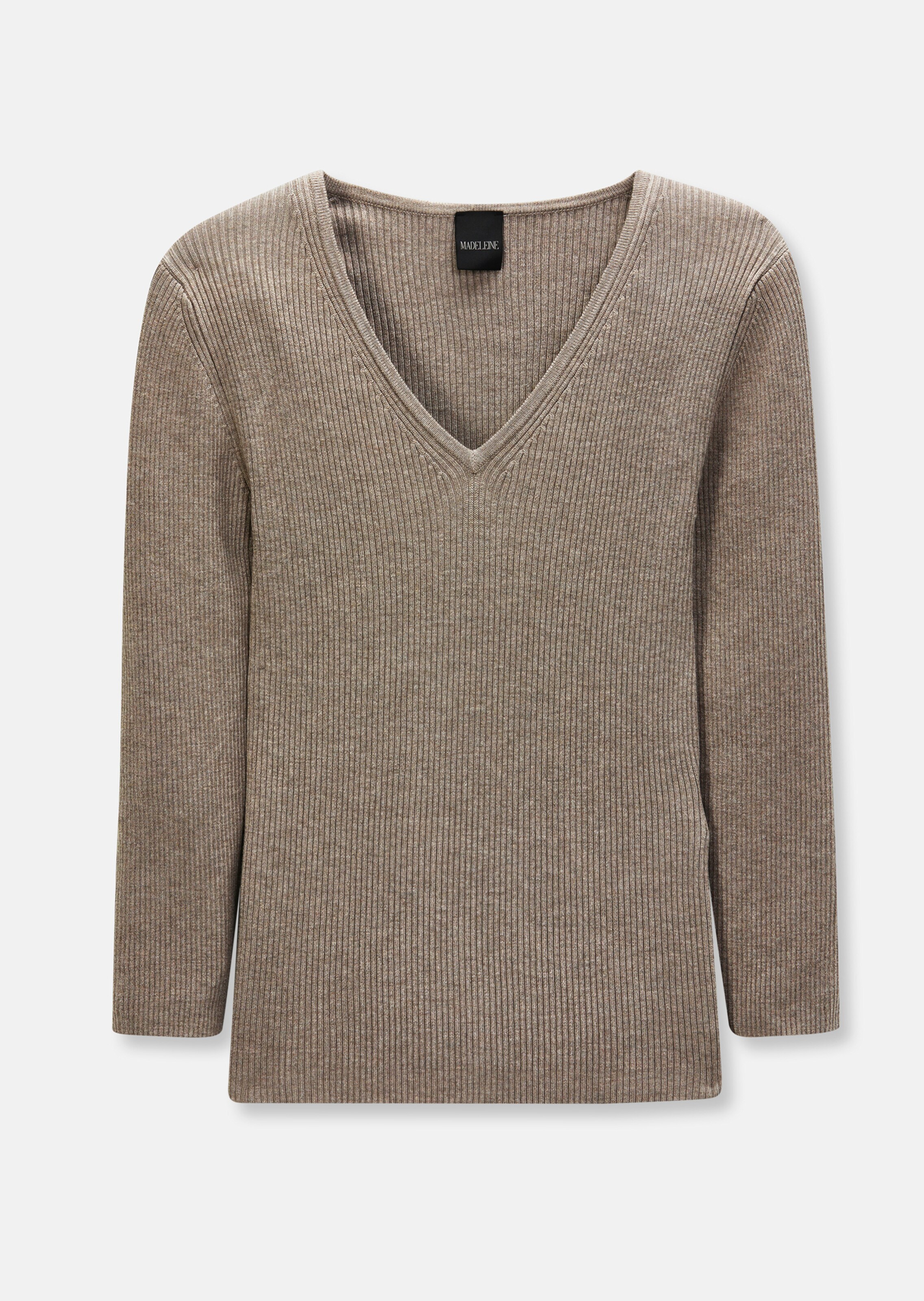 Un basique au style luxueux en maille côtelée d'une tenue irréprochable. Tricoté fully fashioned. Encolure en V et manches 3/4.