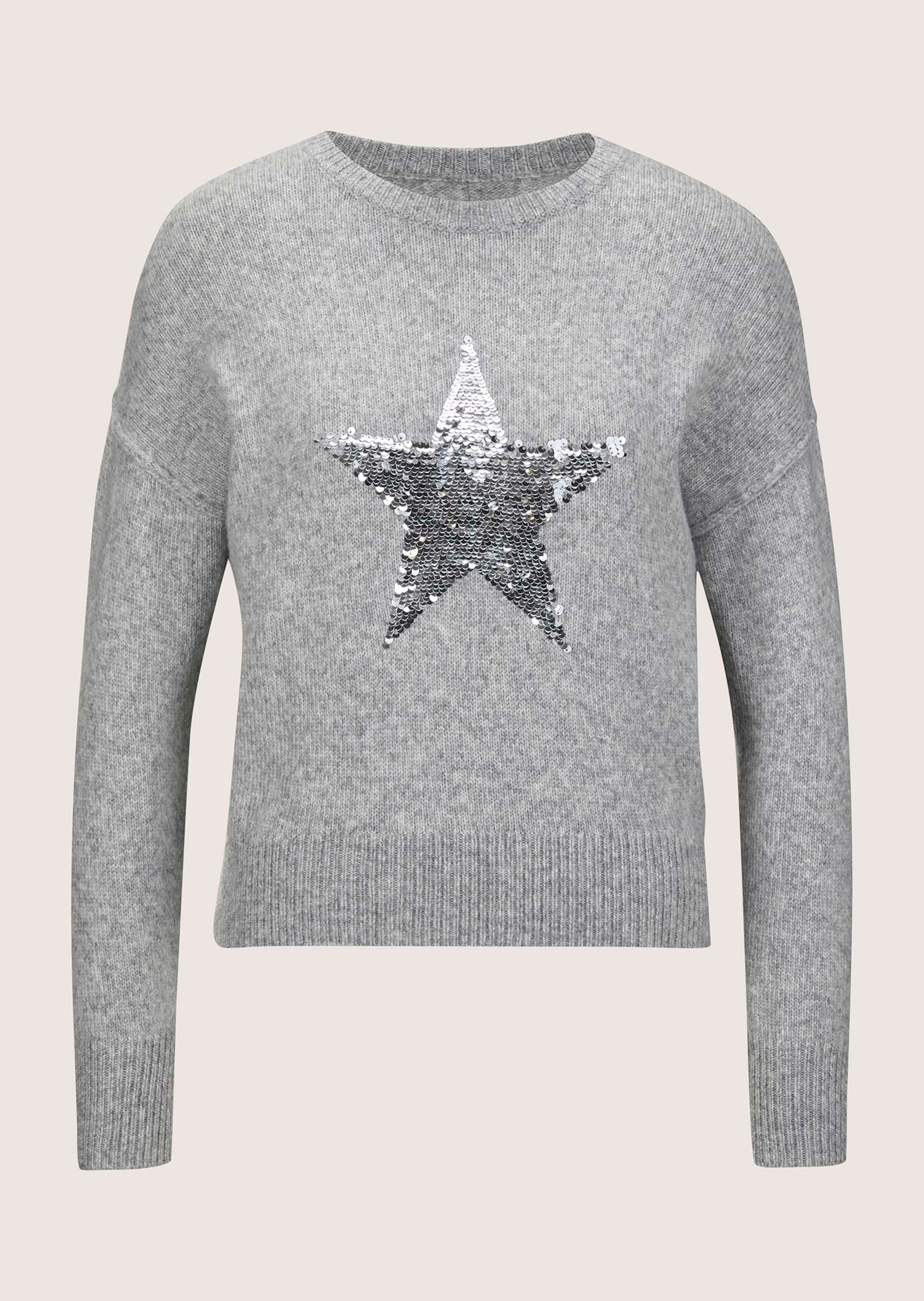 Fil mélangé doux et agréable. Coupe décontractée. Encolure arrondie, épaules descendues et manches longues. Devant avec étoile appliquée en paillettes réversibles. Base arrondie plus courte devant. Bords-côtes d'une tenue irréprochable au bas des manches et à la base.