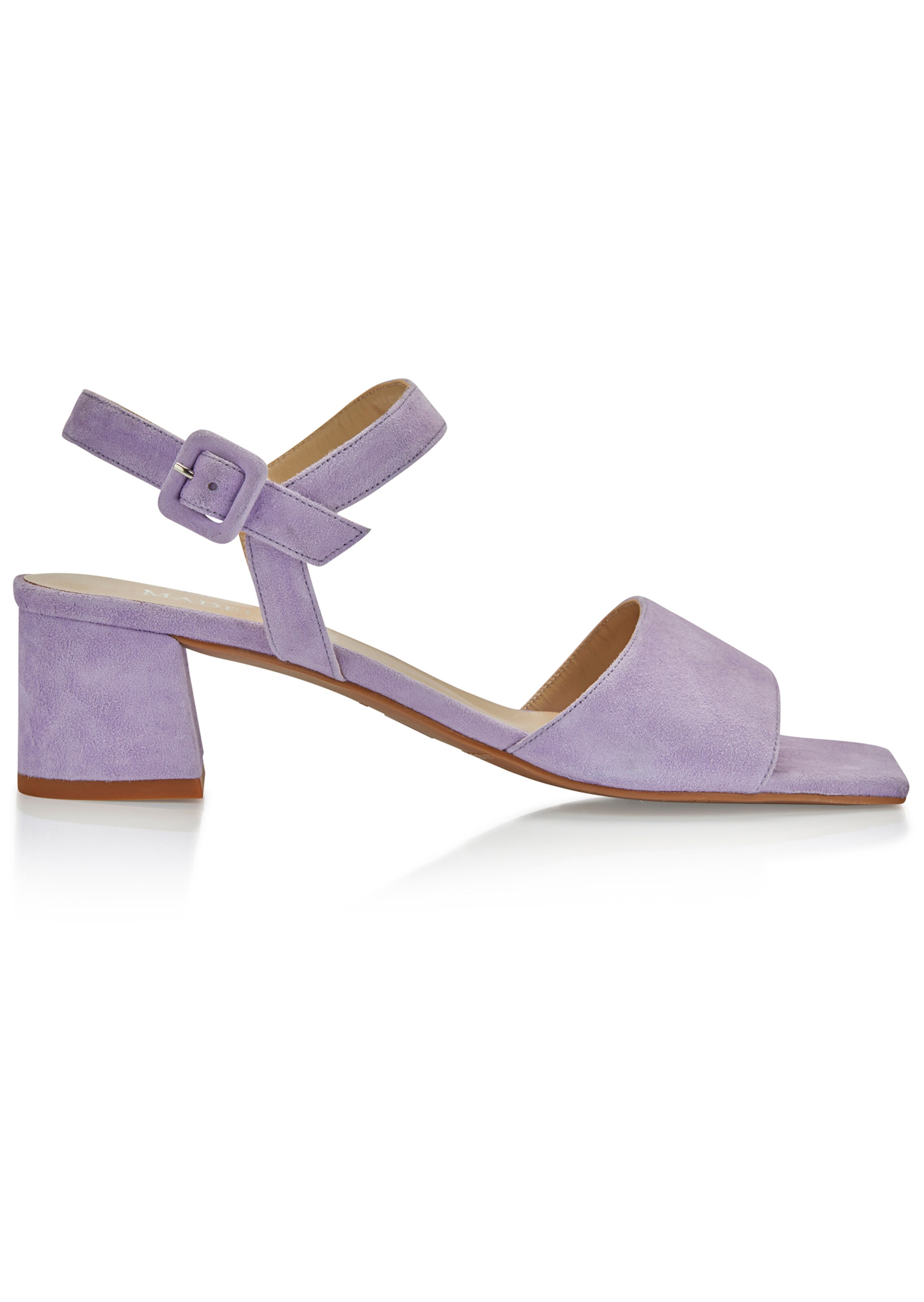 Confectionnées main en Espagne. Cuir velours souple. Bride réglable à la cheville. Talon bloc mode garantissant un grand confort de marche.