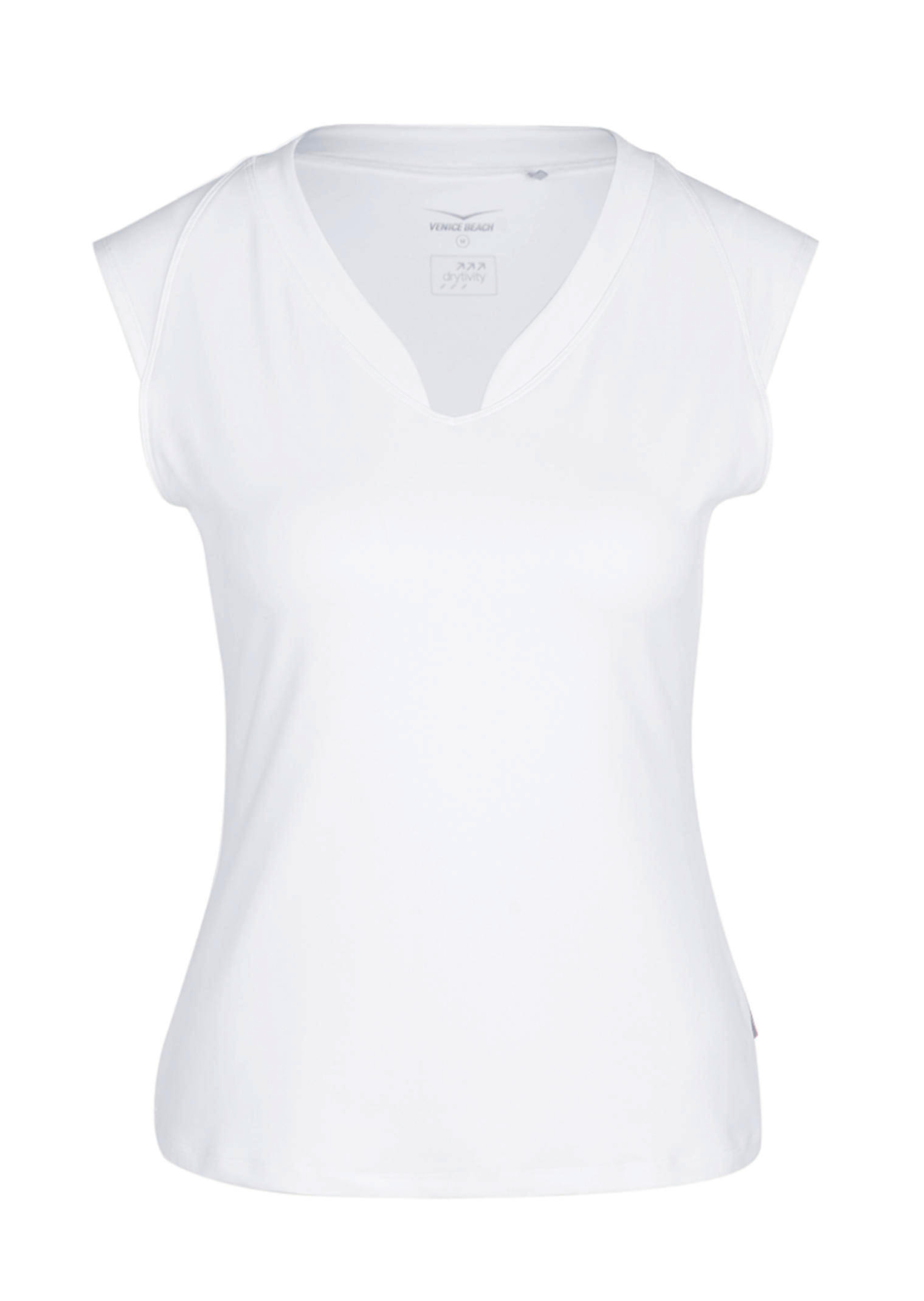Das Shirt "Eleam" von VENICE BEACH vereint sportive Funktionen mit einem femininen Style. Schmal geschnitten betont das Shirt die Figur, der V-Ausschnitt ist mit einer schönen Blende gearbeitet. Das innovative Drytivity-Funktionsmaterial bringt dabei alle Eigenschaften mit, die ein Sport-Shirt braucht: Es ist feuchtigkeitsregulierend, waschbar und pflegeleicht. Länge in Gr. M ca. 54 cm.