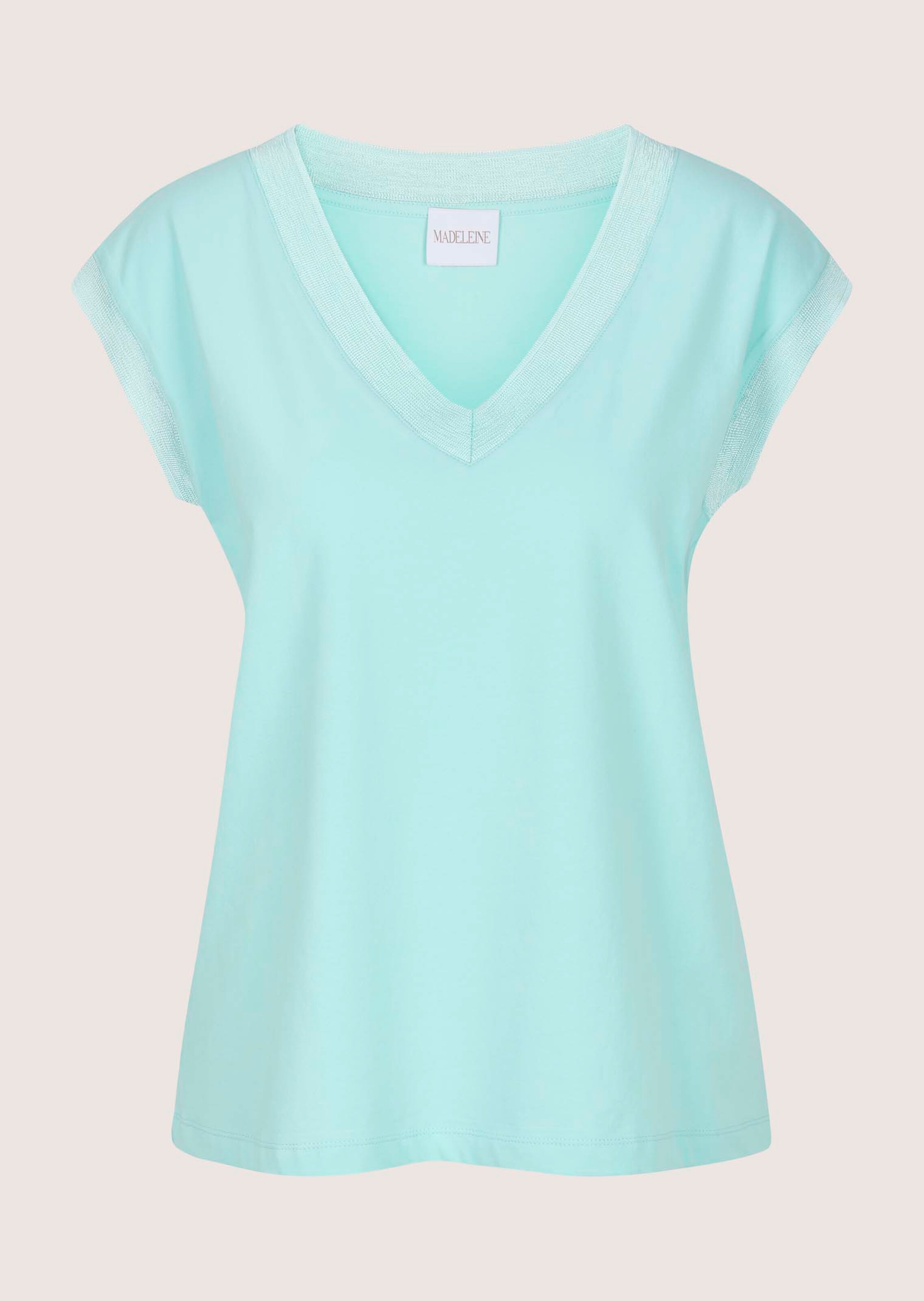 Le T-shirt sans manches indispensable dans toutes les garde-robes. Bande côtelée sur l'encolure en V et sur les emmanchures. Matière douce et extensible.
