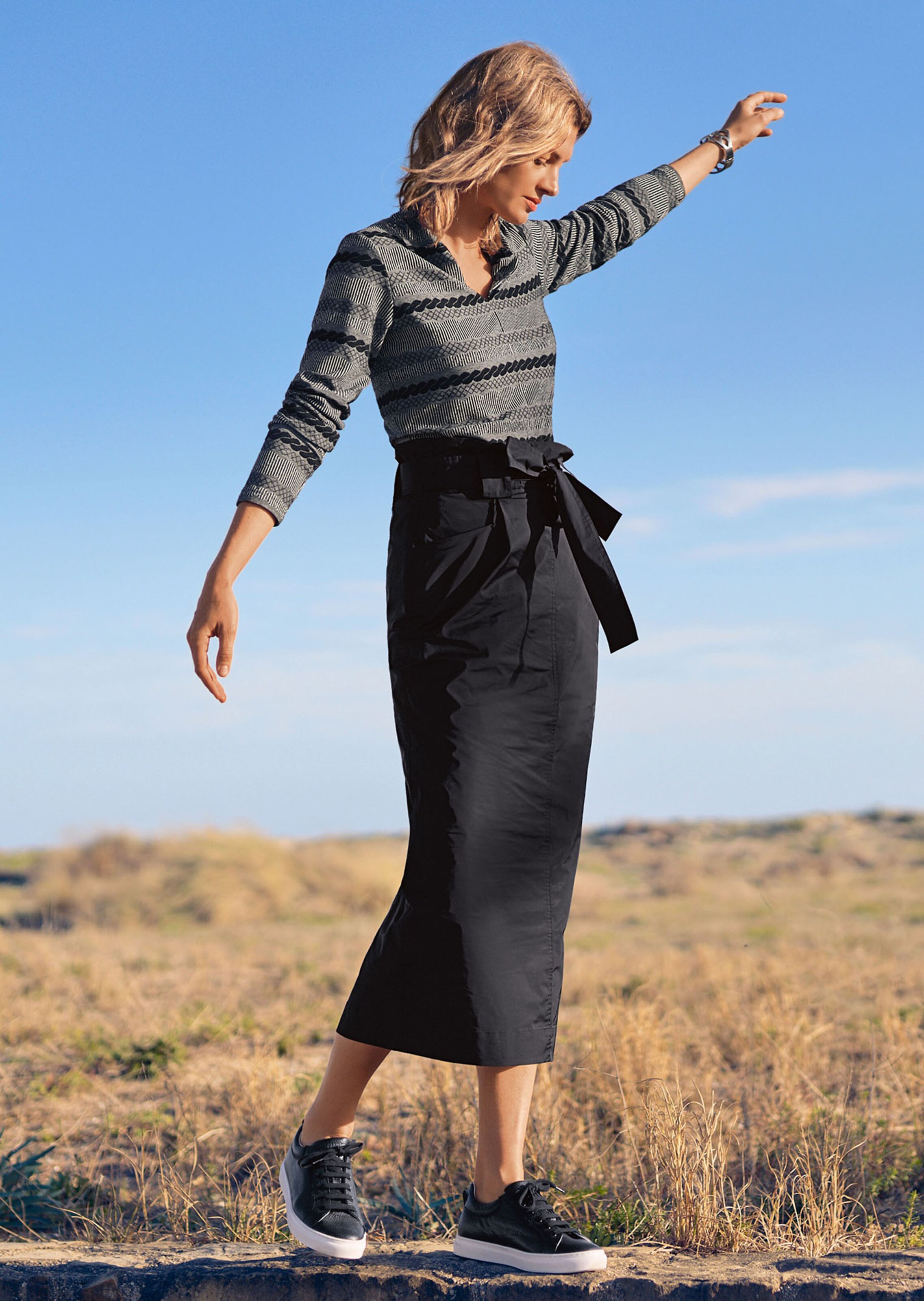 Style tendance. Jersey très agréable avec imprimé unique. Coupe confortable. Encolure en V et manches longues.
