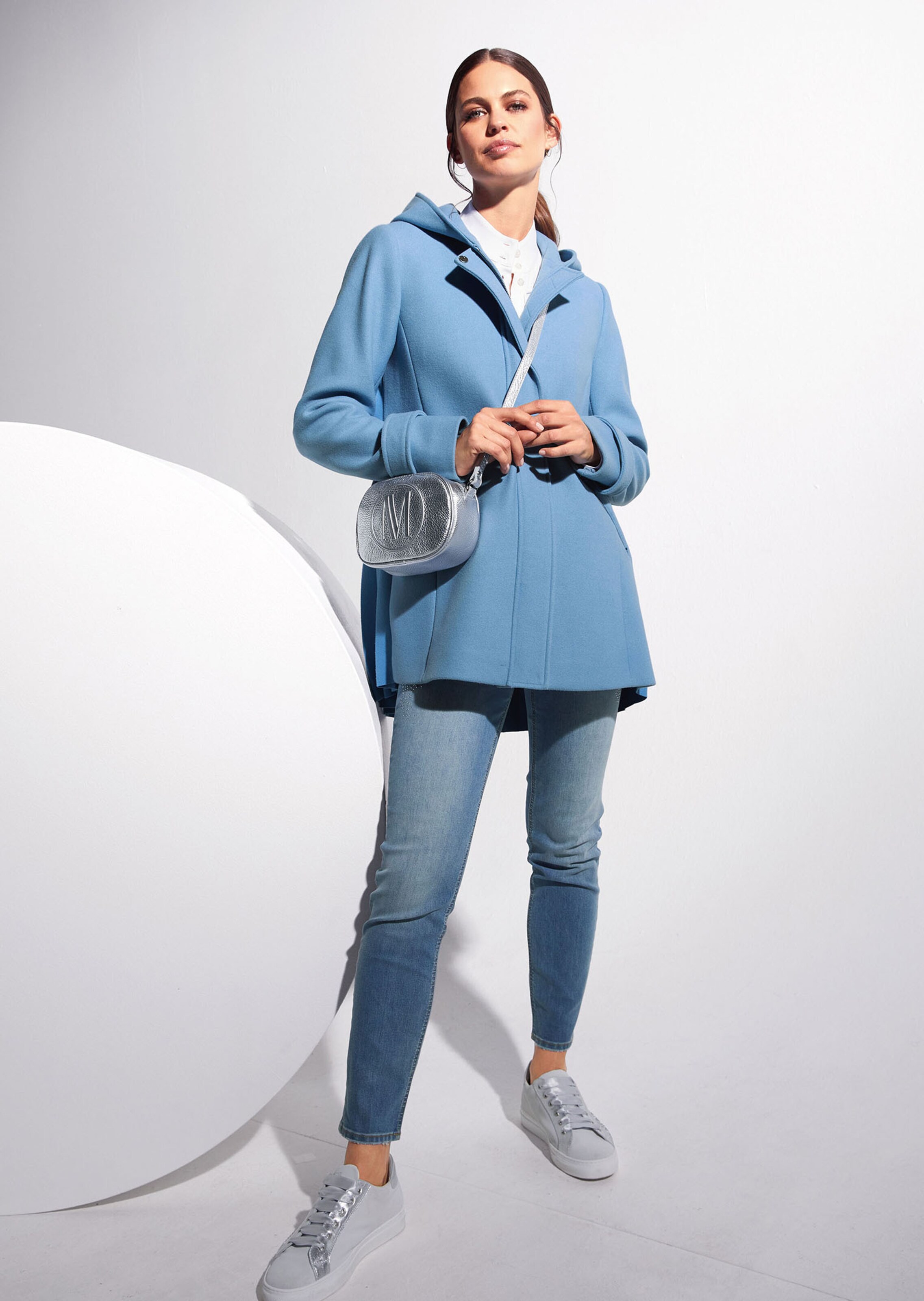 Élégant dos plissé. Ligne évasée tendance. Capuche, poches zippées et zip double curseur sous patte pressionnée. Manches longues avec bride fantaisie.