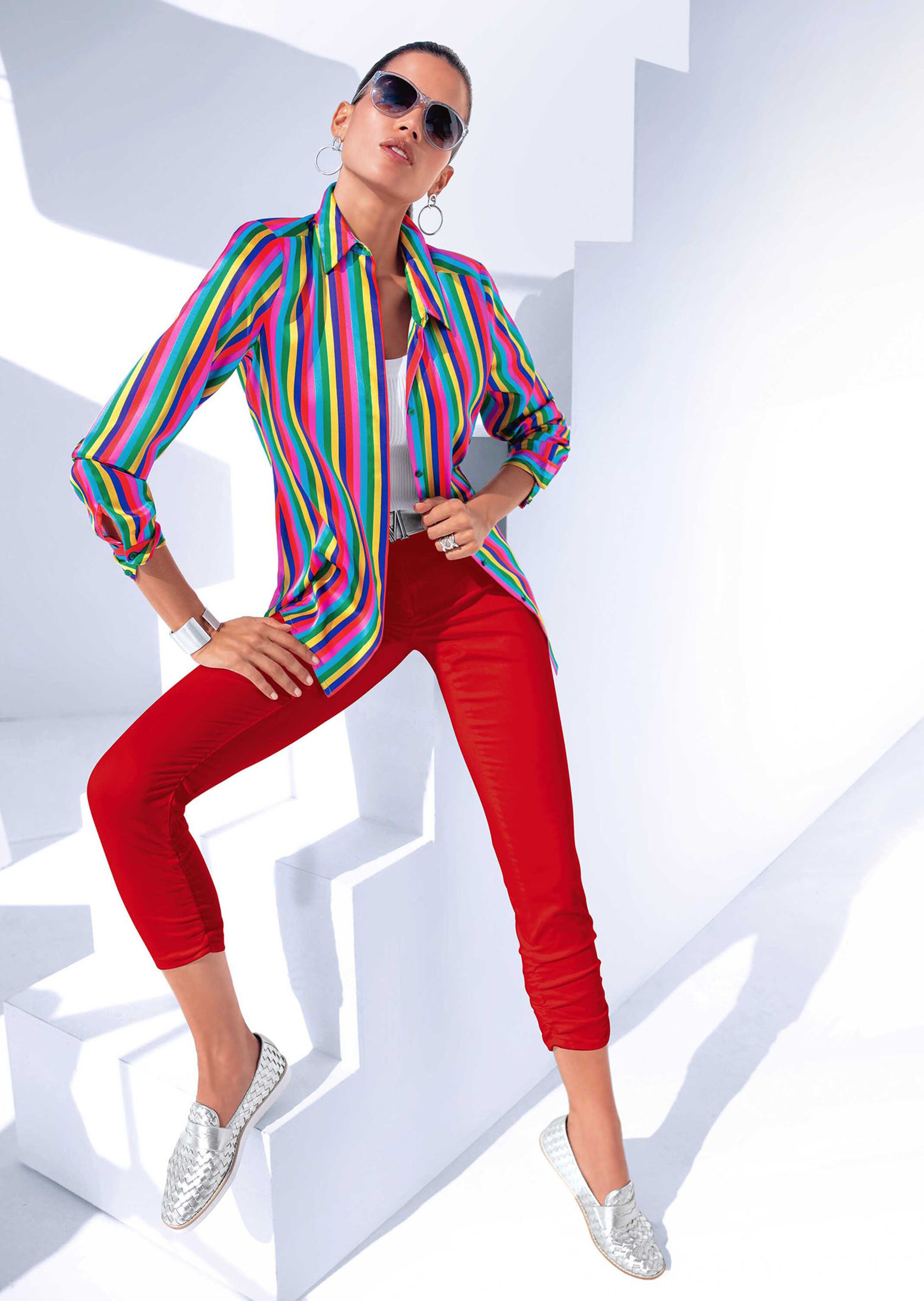 Plooien opzij onderaan de pijpen maken de verkorte stijl zo vrouwelijk. Smal gesneden 5-pocket-style in modieuze 7/8-lengte. Tailleband met riemlusjes.