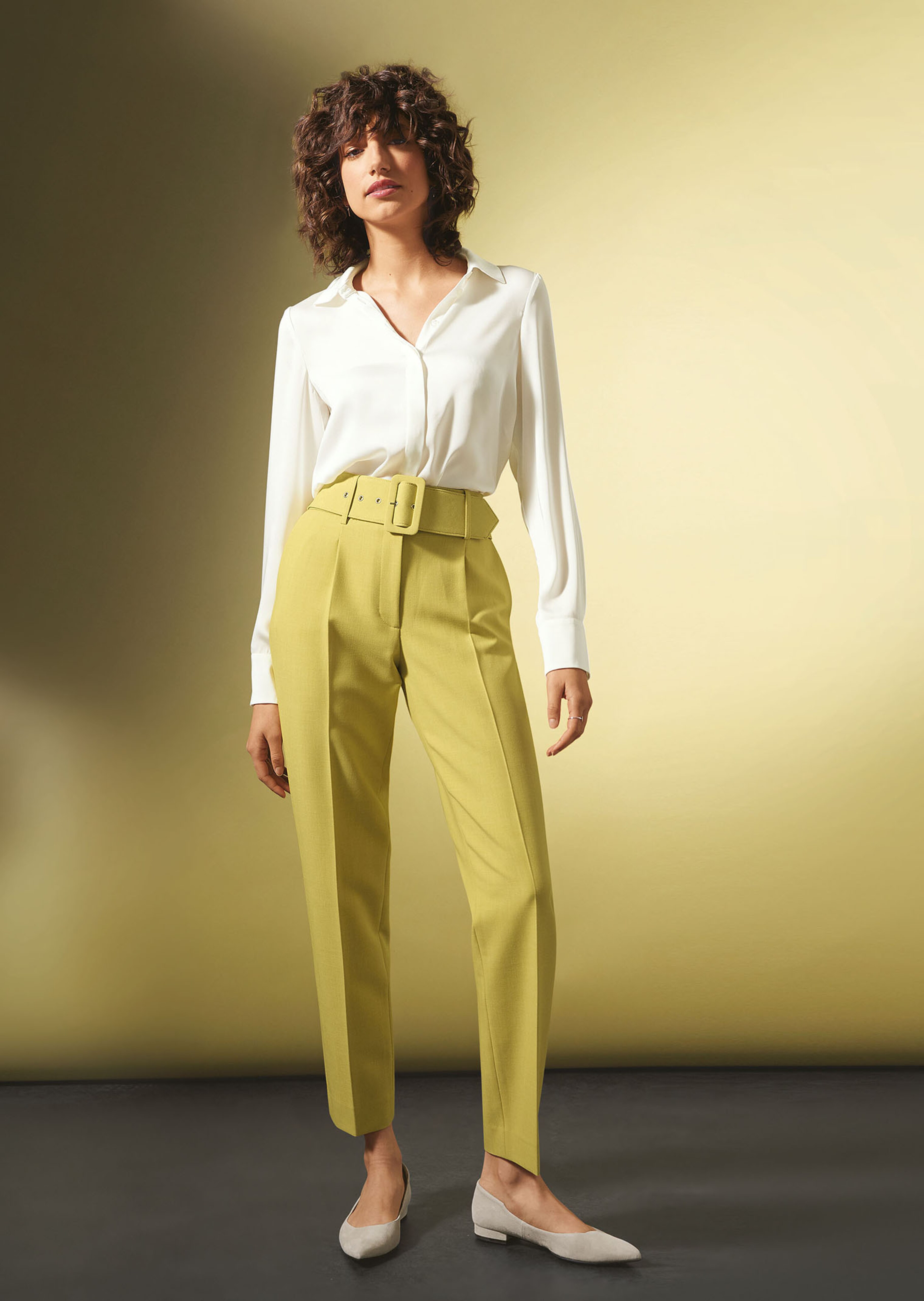 Chic, vrouwelijk en van een duurzame kwaliteit met gerecyclede garens. Lichtjes figuur accentuerende lijn met overhemdkraag, blinde knopenlijst en een afgeronde zoomlijn. Lange mouwen met knoopmanchet.