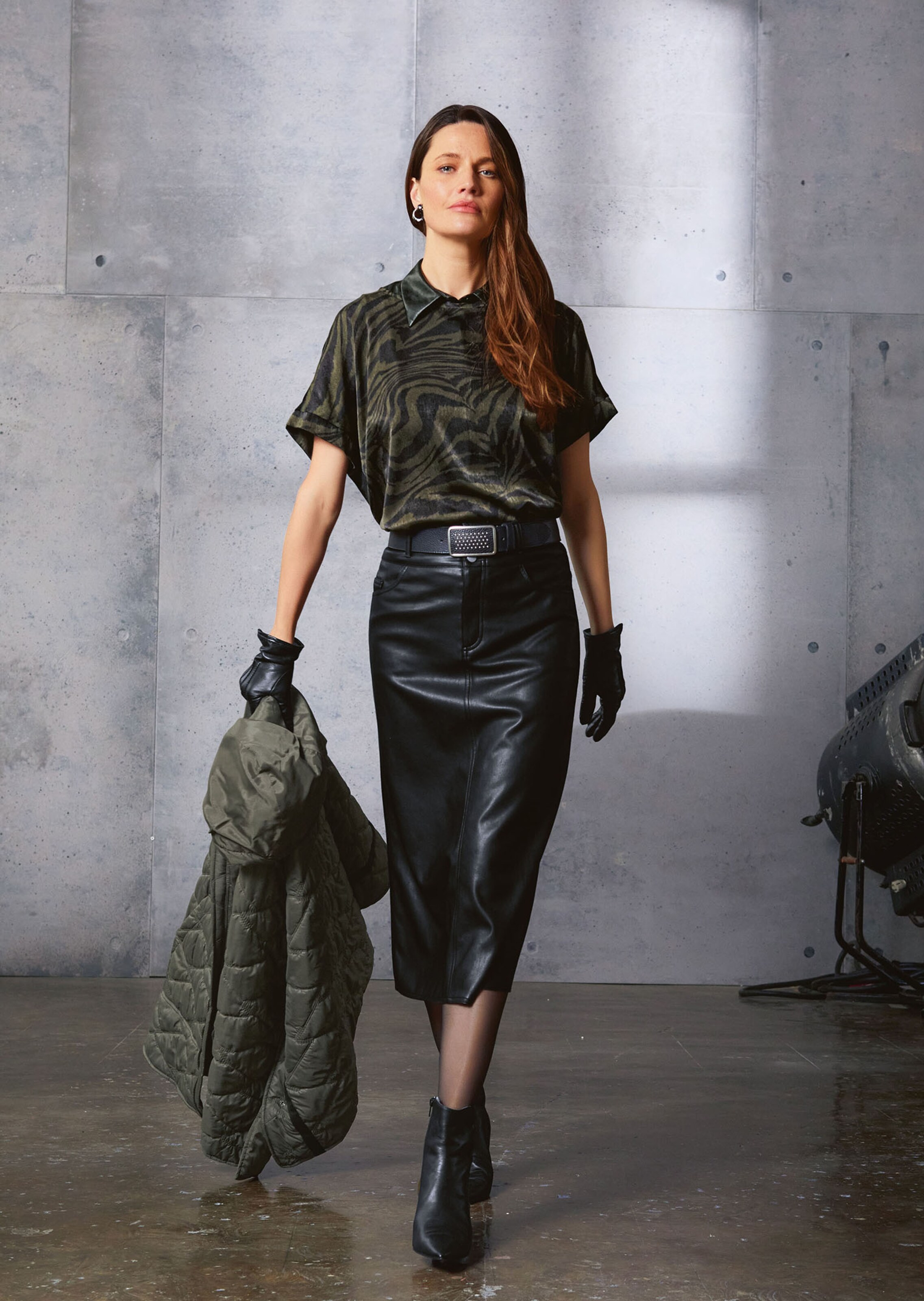 In een populaire mix van materialen; voor geweven en aan de achterkant van jersey. De tweekleurige print maakt elk exemplaar uniek. Met ronde halslijn en aangeknipte schouders.