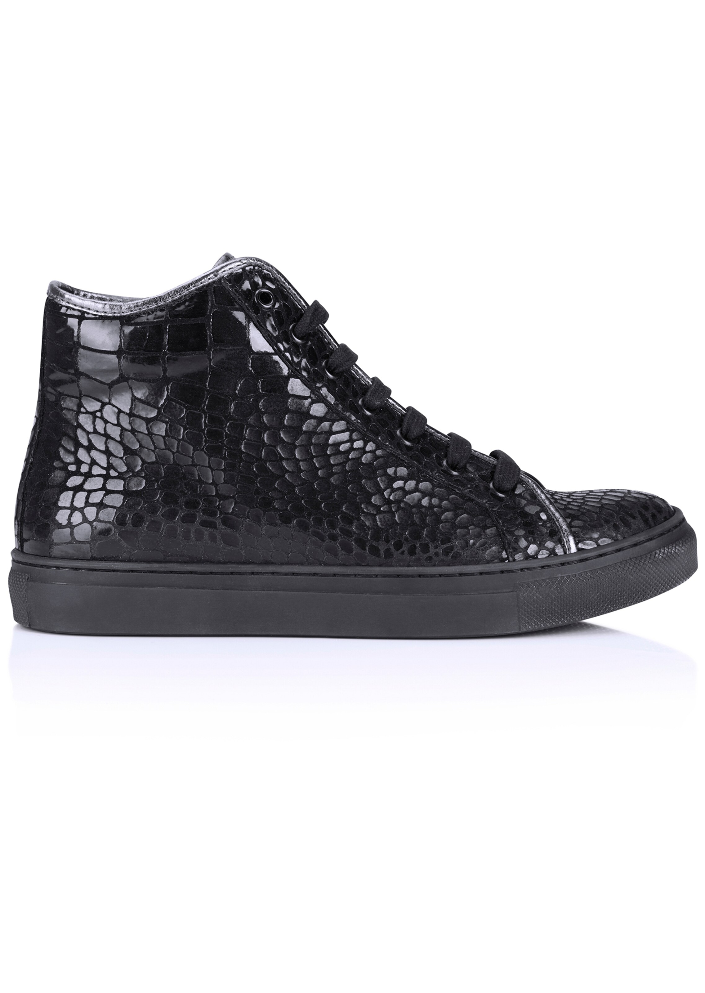Met de hand gemaakt in Italië. Hightop-veterschoenen van waardevol geprint leer. Met uitneembare binnenzool.