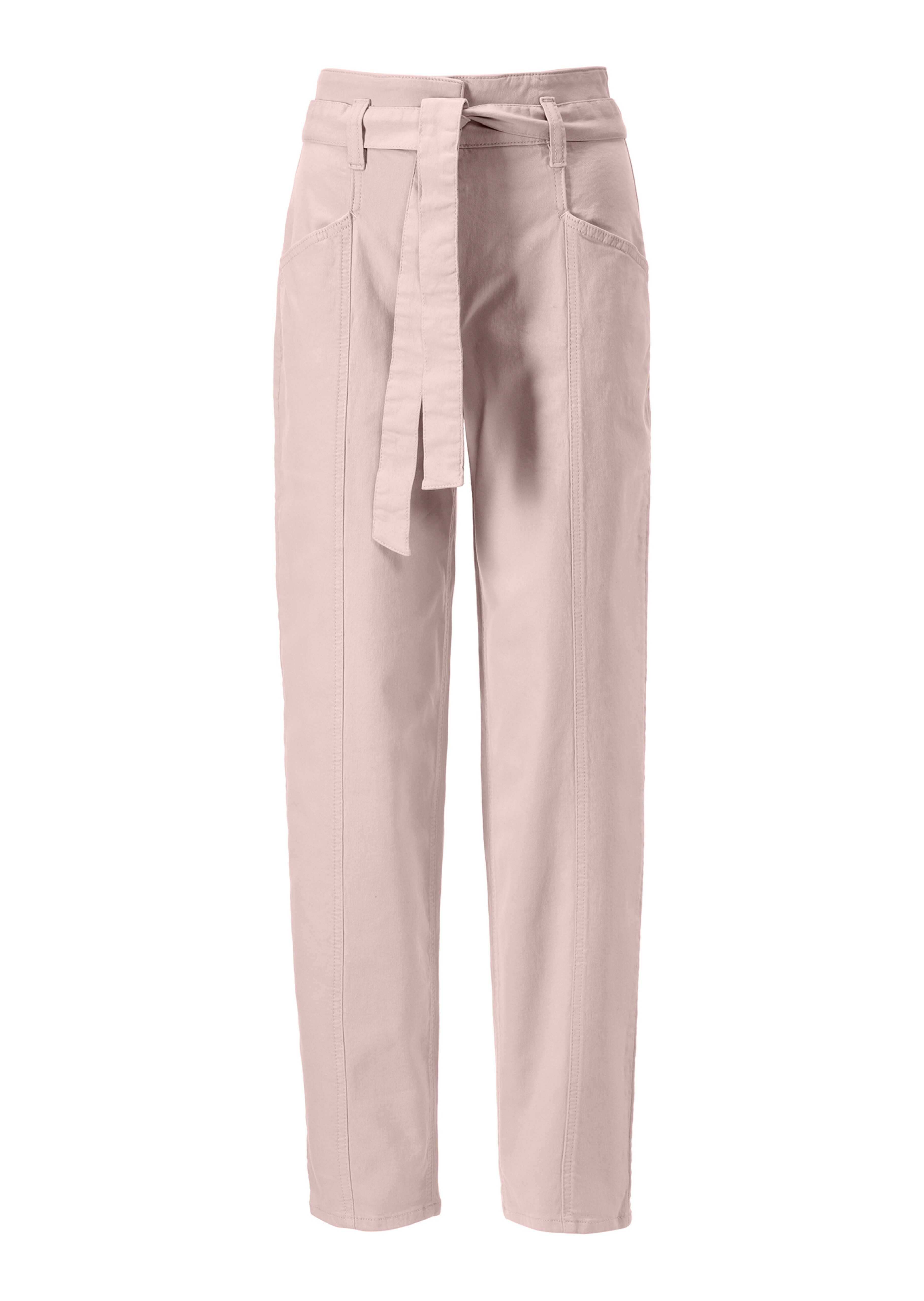 Van duurzaam gewonnen katoengarens en in een duurzame wassing voor de denimkleuren. Trendstyle in een lengte tot boven de enkels, met licht taps toelopende pijpen met een doorgestikte naad en een strikceintuur. Met knoopsluiting, riemlusjes, steekzakken en opgestikte achterzakken.