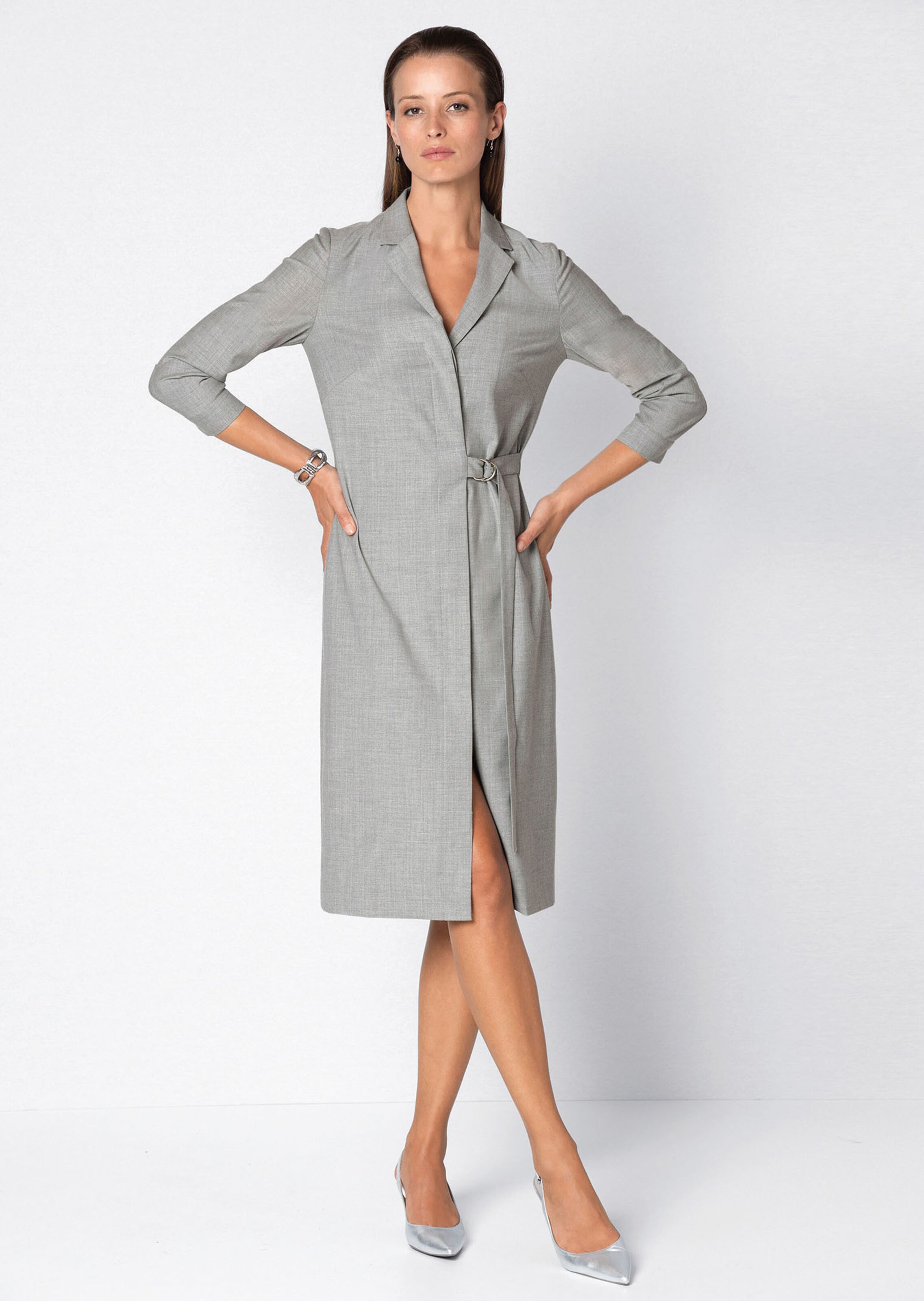 In geliefde CERAMICA-kwaliteit met een duurzaam aandeel viscose. Moderne stijl in nonchalante H-lijn met reverskraag, blinde knopenlijst, zilverkleurige siersluiting en 3/4-mouwen met manchet.