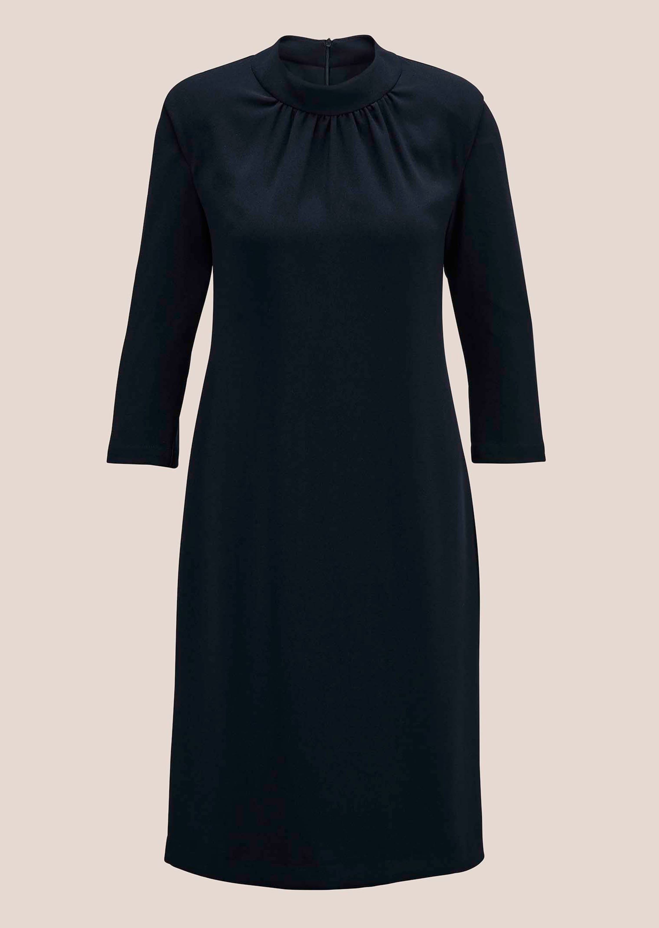 Een vleugje elegantie en verfijning: deze figure-hugging jurk van hoogwaardige crêpestof. De korte opstaande kraag voegt een geraffineerd accent toe. Met schoudervullingen, naden achter en een ritssluiting op de rug voor een perfecte pasvorm. De 3/4-mouwen maken de look af.