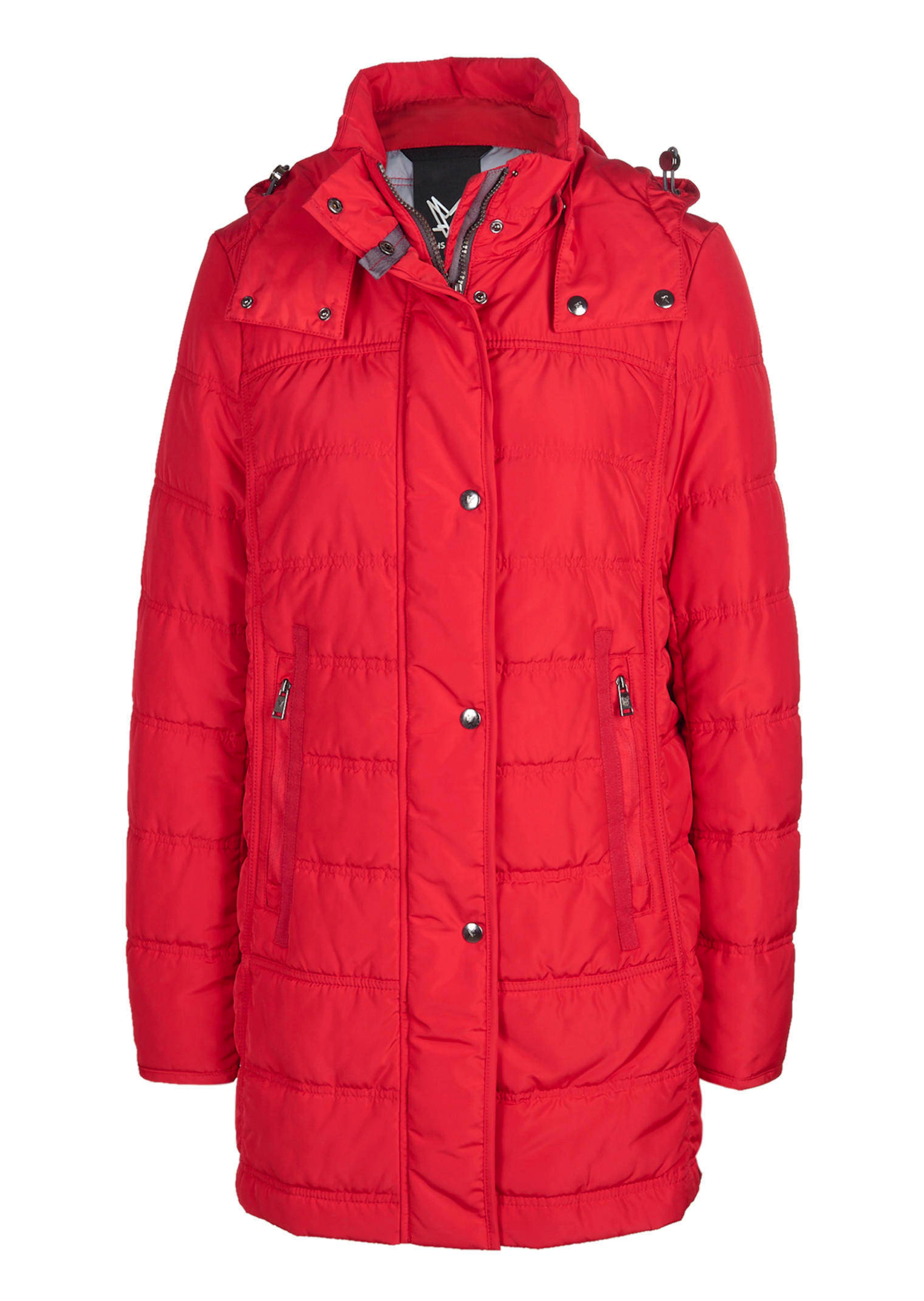 Kurzmantel von FUCHS SCHMITT in klassischem Stepp – damit kommen Sie gut durch die kalte Jahreszeit. Die abnehmbare Kapuze ist mit einem Gummizug und einem kleinen Dach gearbeitet, das schĂŒtzt vor Wind und Wetter. Ebenso dient der hohe Stehkragen und der Reißverschluss mit Untertritt und verdeckter Druckknopfleiste als Wetterschutz. Das RĂŒckteil hat einen kleinen Zierschlitz mit Bindeband fĂŒr mehr Bewegungsfreiheit. Reißverschlusstaschen im Vorderteil und eine Innentasche mit Druckknopf sind ein praktisches Must-Have. LĂ€nge in Gr. 36 ca. 84 cm. Styling-Tipp: Das etwas lĂ€ngere Modell verleiht Ihrem Outfit eine sportive Note und passt daher besonders gut zu Jeans und dicken Lammfellboots.