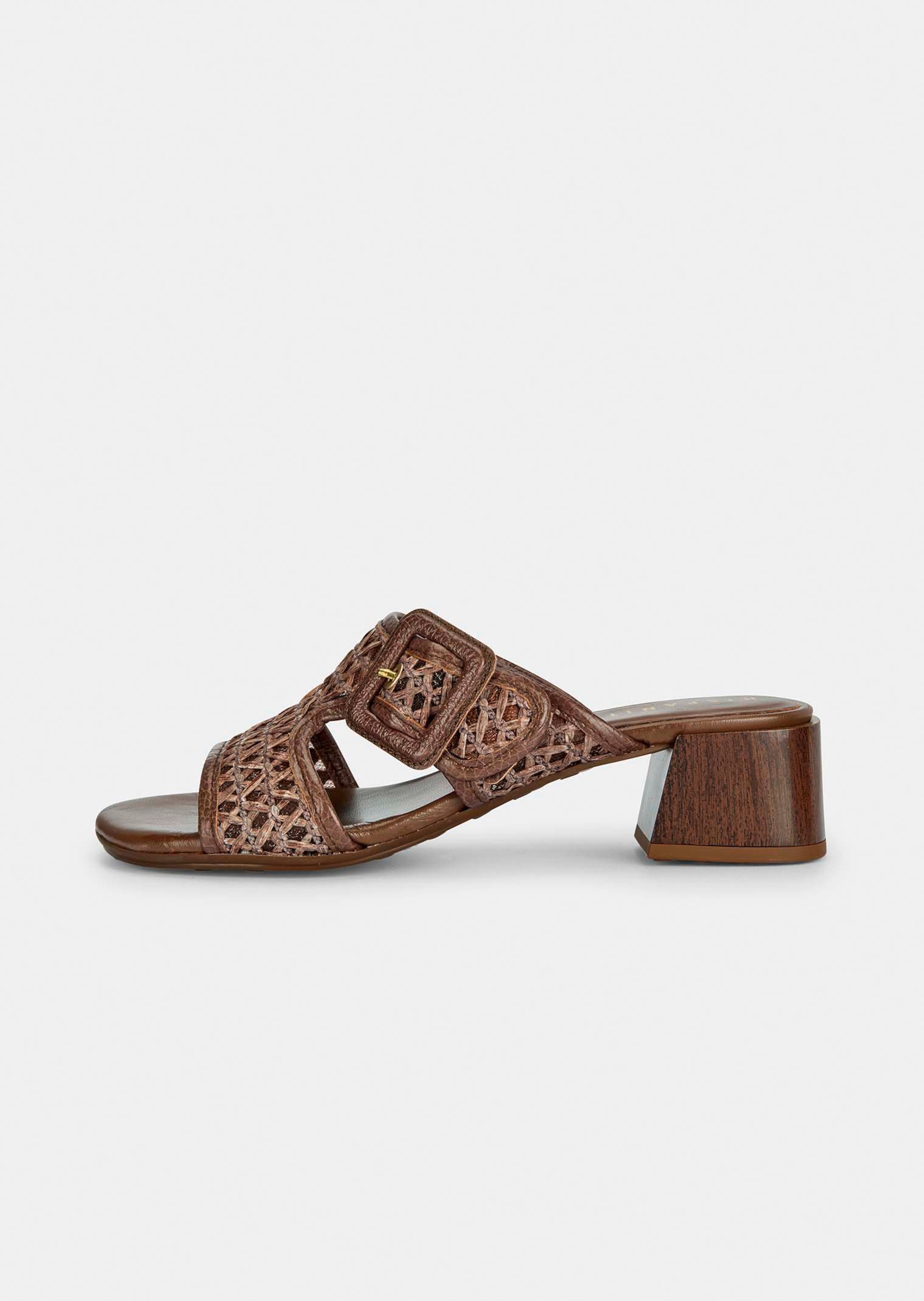 Van HISPANITAS. Met vlechtwerk en bijpassend gekleurde gesp. Hak in houtlook en flexibele, anti-slipzool.