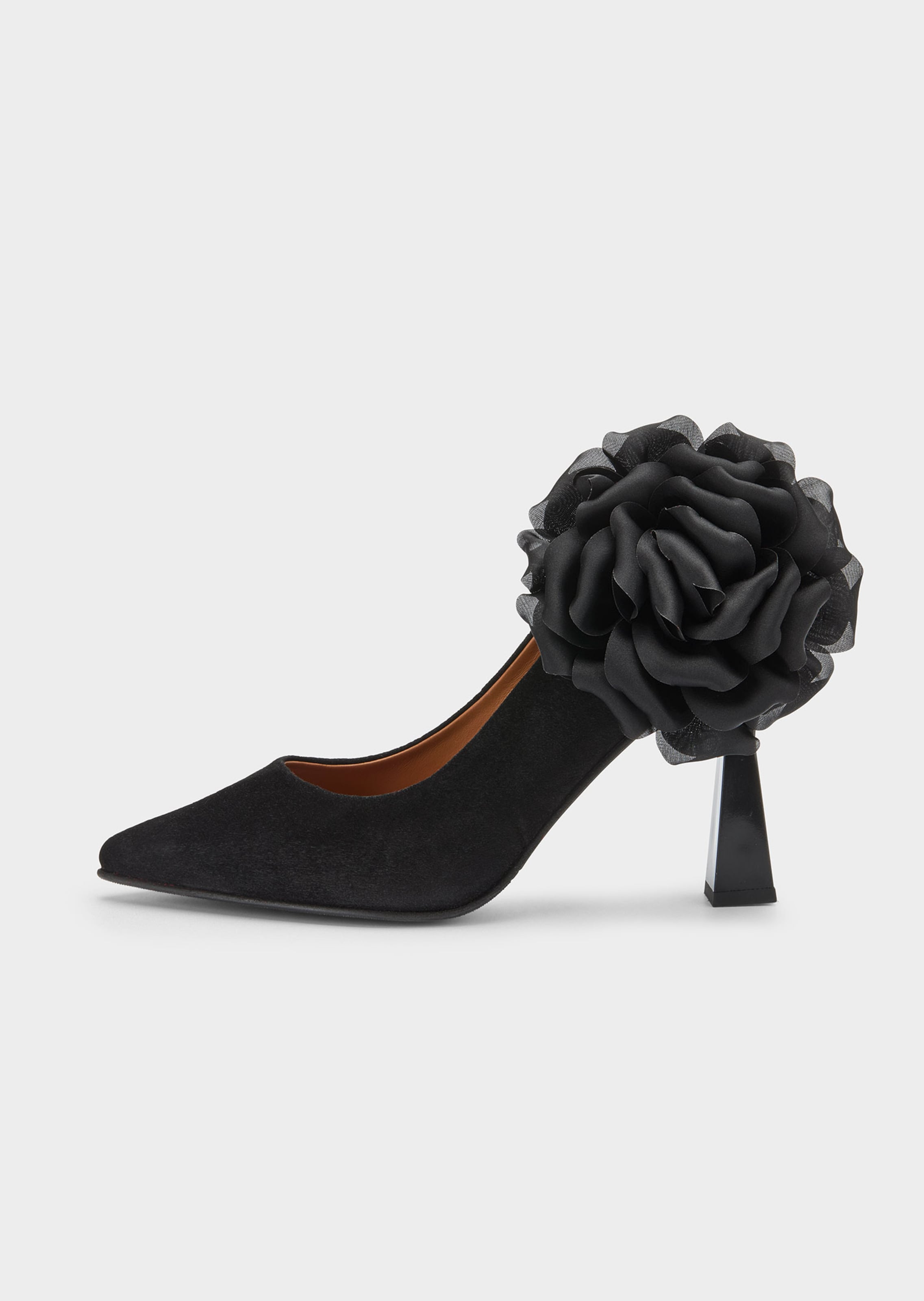 Fluweelachtige buckskin met een expressief bloemenornament aan de zijkant in F-breedte.