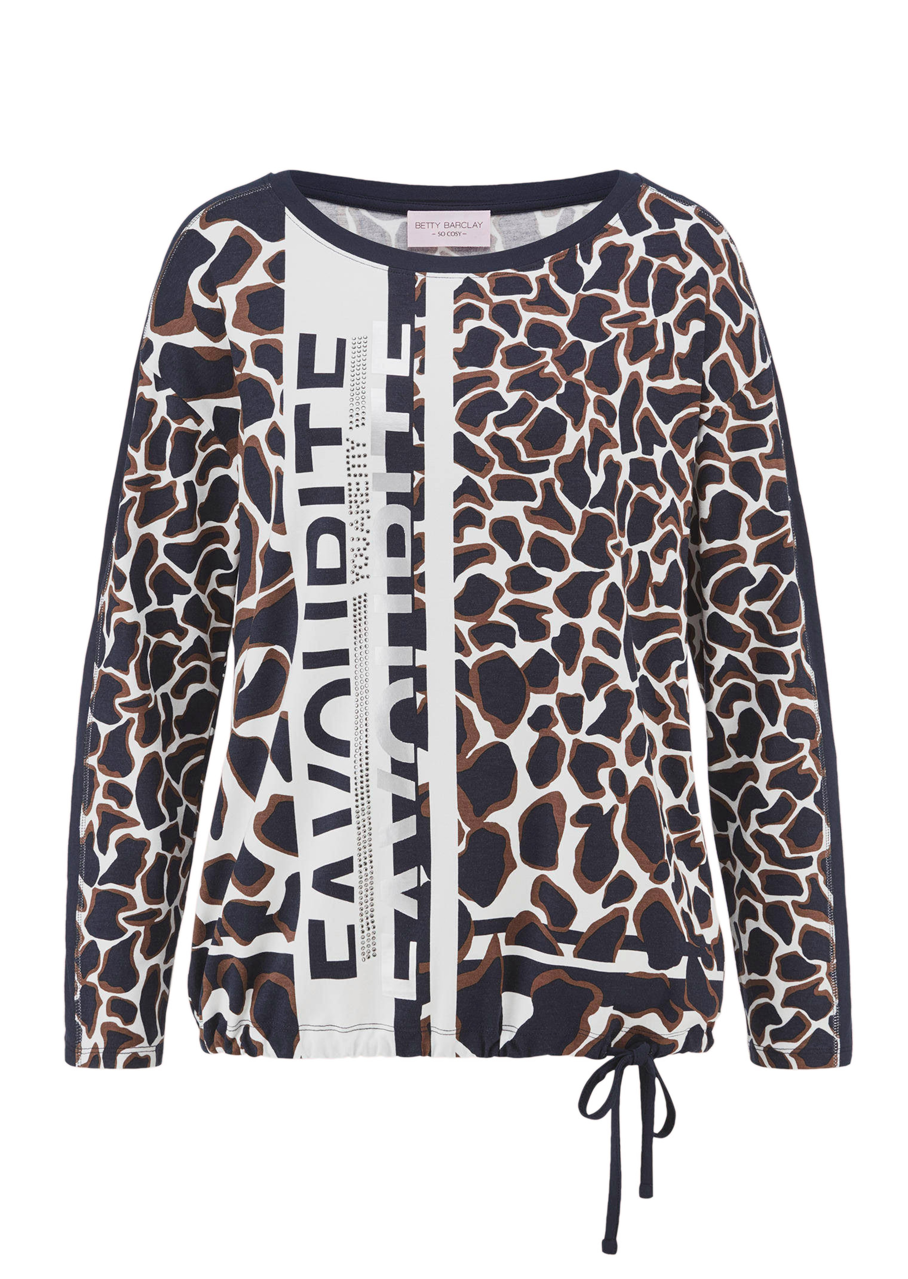 Shirt met lange mouwen van BETTY BARCLAY gemaakt van heerlijk zachte viscosejersey met elastaan die zit als een tweede huid. De fantasierijke luipaardprint wordt perfect geaccentueerd door fonkelende strassteentjes en gestileerde letters – voor een look die elegantie en sportieve nonchalance combineert. De ronde halslijn, de effen gestreepte inzet op de mouwen en de zoom met tunnelkoord maken van dit shirt een flexibele stylingpartner die u de hele dag comfortabel houdt.