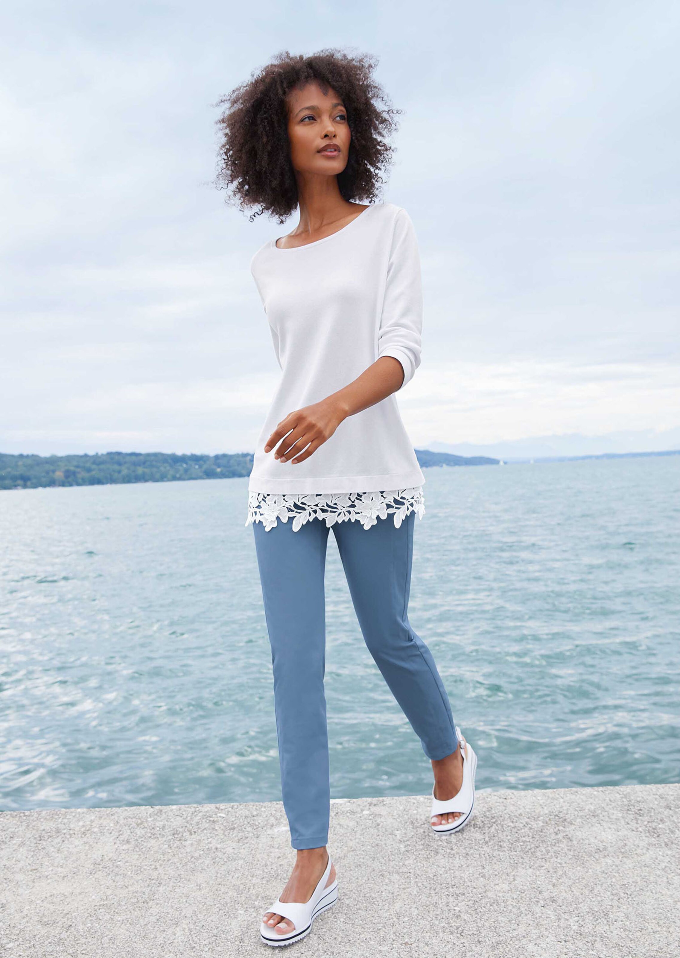 Smal ontwerp in slim-fit-model met een strekkende siernaad en een modellerende tailleband. Afgewerkt zonder zakken. Onderhoudsvriendelijke, mooi in model blijvende, comfortabele kwaliteit.
