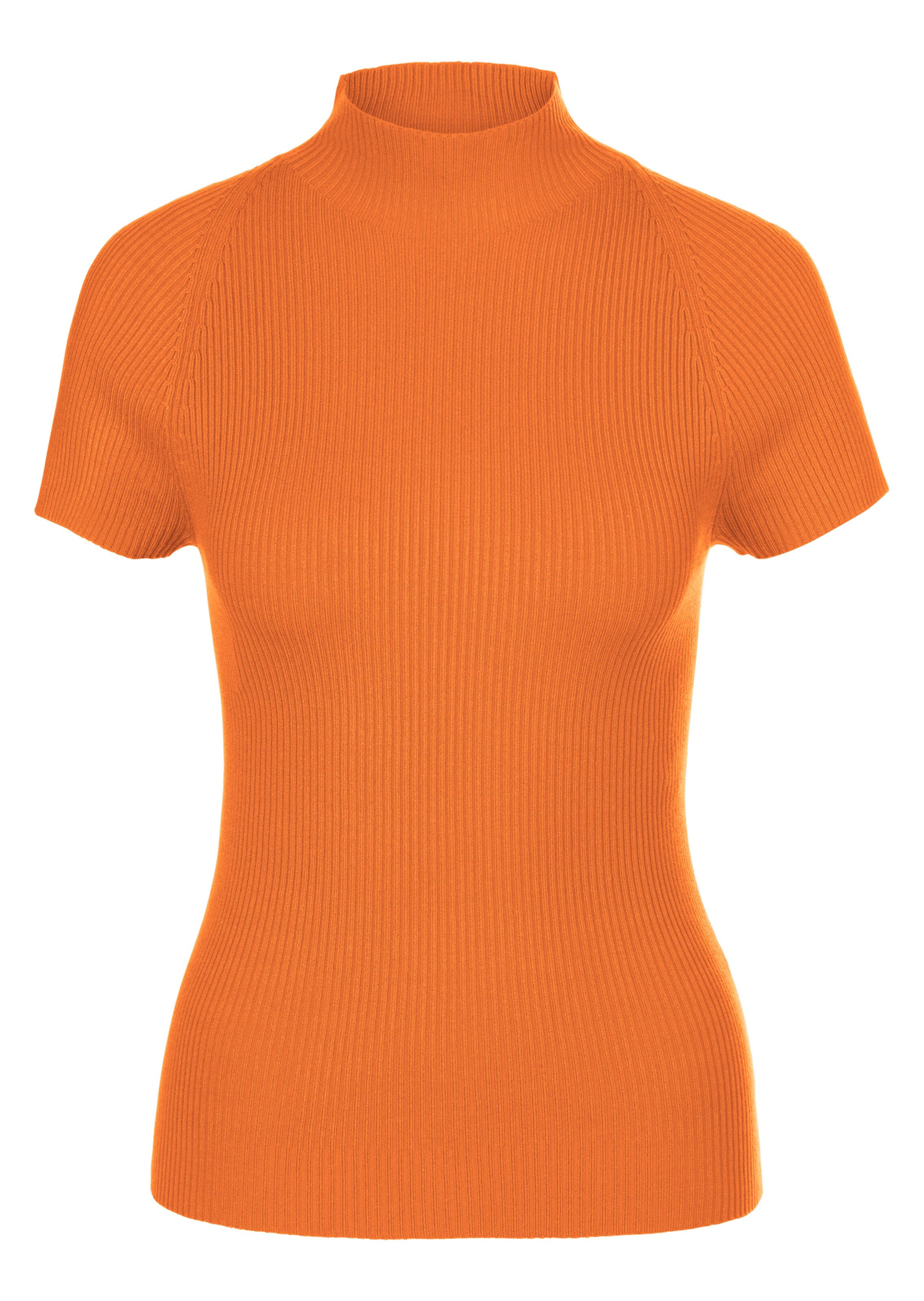 Aangenaam elastische ribtricot met opstaande kraag en korte raglanmouwen.