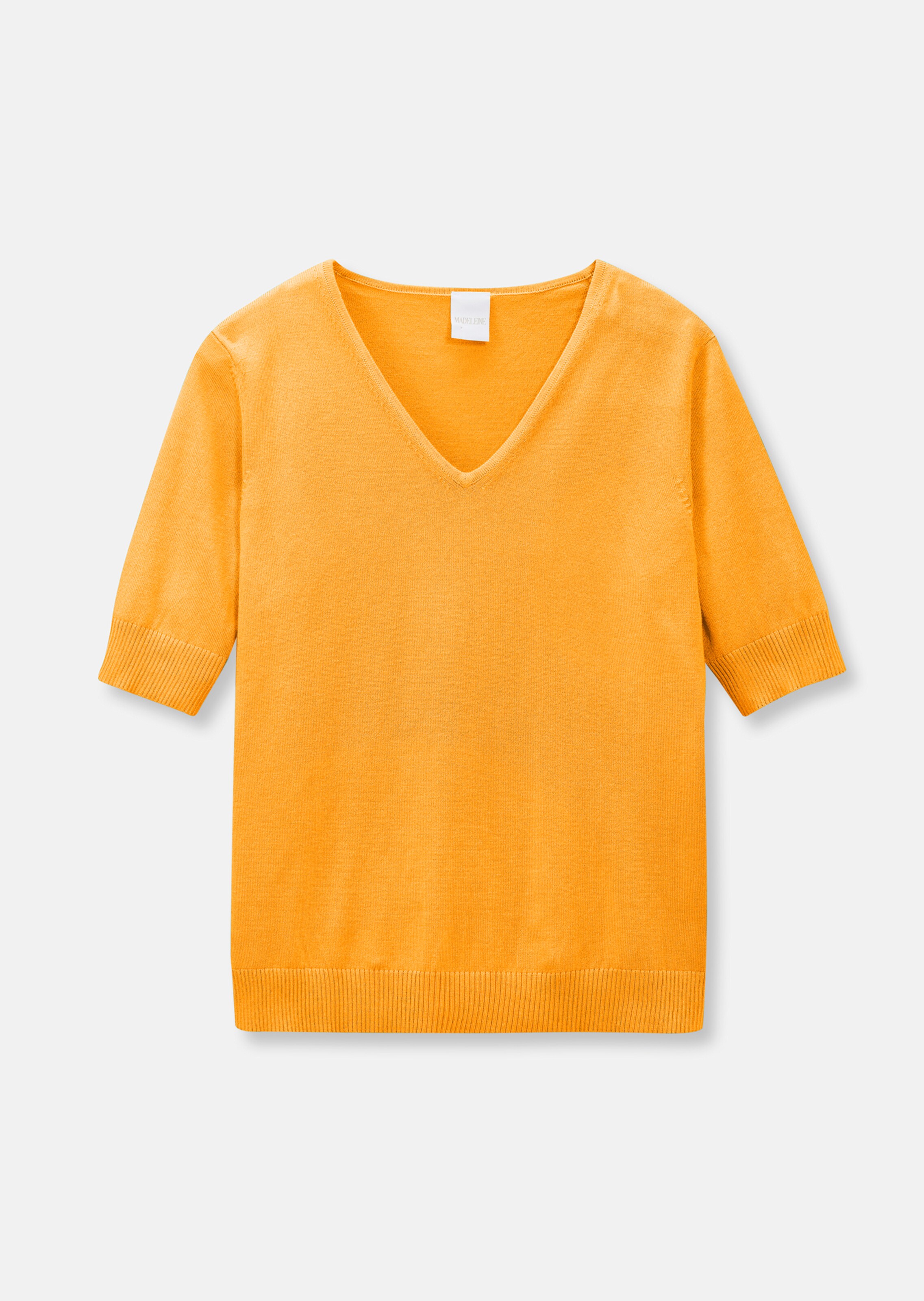 Van zachte stretchviscose. Hoogwaardig in model gebreid met V-hals en halflange mouwen.