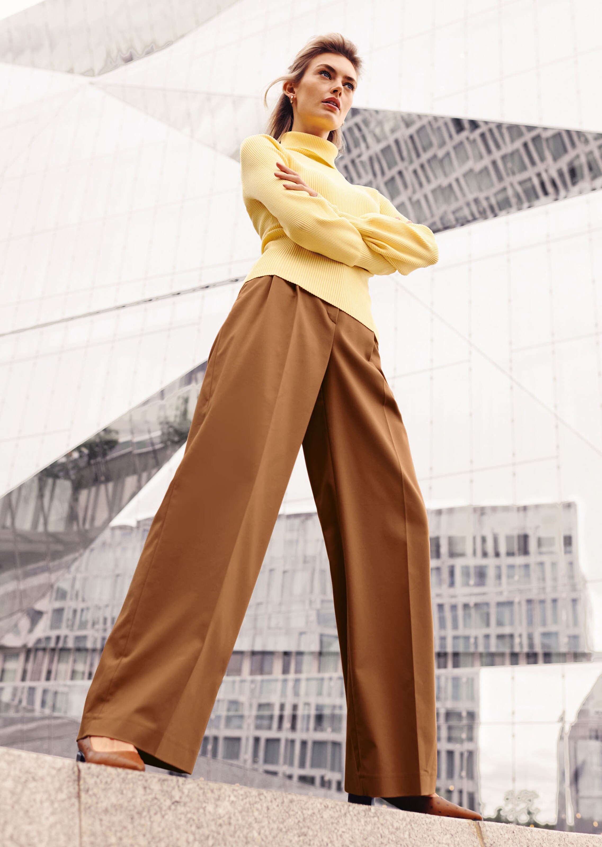 Figuuraccentuerende trendbasic van een zachte mix met viscose. Hoogwaardig als ribstof in model gebreid. Met col, wijde raglanmouwen en mooi in model blijvende zoomboordjes.