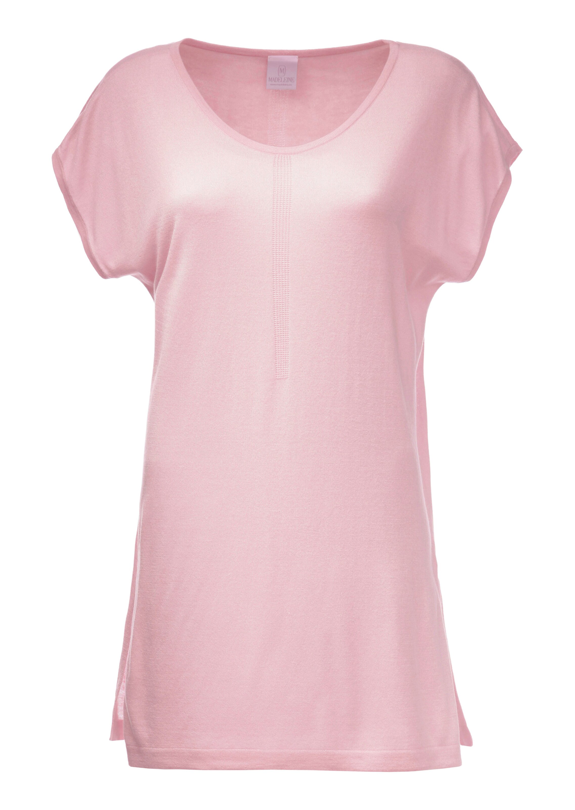 Eenvoudig patroonspel op fijne ajourtricot zet aan de voorkant en op de rug mooie accenten. De comfortabele, soepel vallende garenmix zorgt voor een zachte en lichte look. Modieus casual lang model met V-hals, aangeknipte mouwen en splitten opzij.