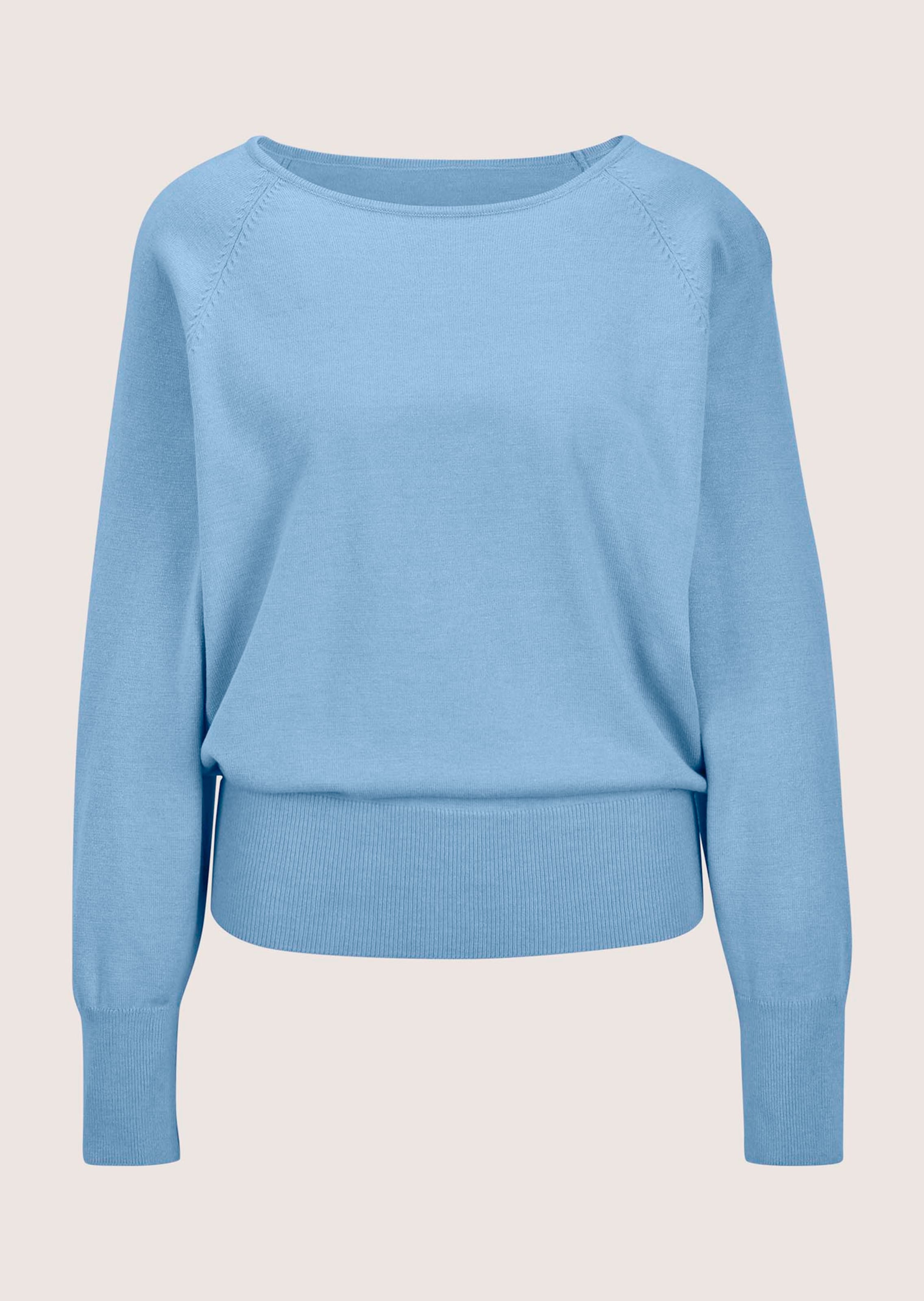 Lichtgewicht, fijn gebreide trui met een boothals en raglan-vleermuismouwen. Ribboorden aan de zoom en mouwen. Perfect voor ontspannen city styles of casual looks.