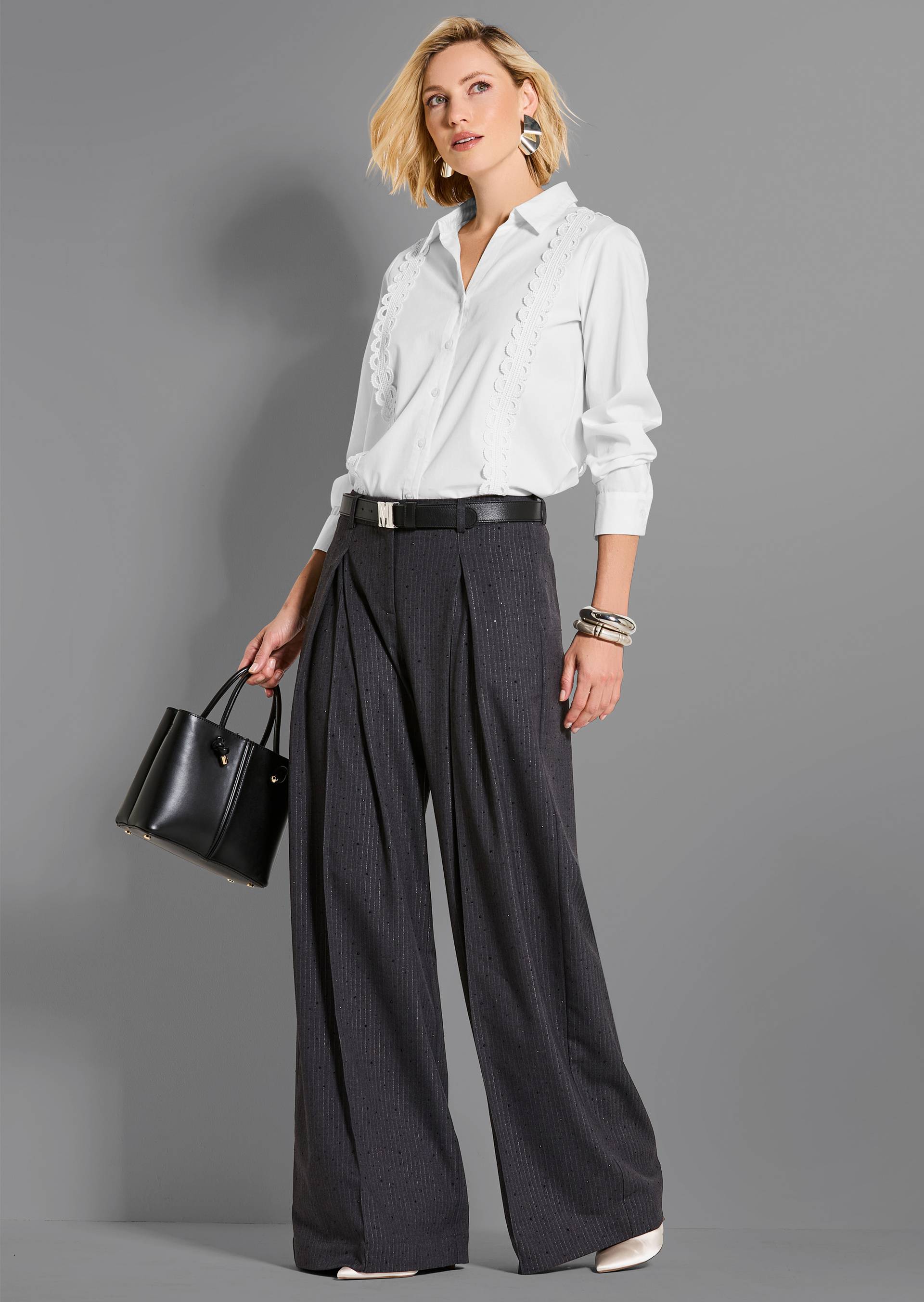 The boho style combines 70s flair, exotic chic and folkloric elements to create a cool look. A real key piece is the broderie anglaise maxi skirt, which, together with a lace blouse, emphasises the romantic side of the boho style. For a more nonchalant look, choose a pair of wide trousers combined with a shirt with flounces. The warm earth tones and the imaginative print design have an exotic allure without being over the top. Both outfits demonstrate that clean lines, flowing materials and a touch of retro chic make the trend mature and timeless.