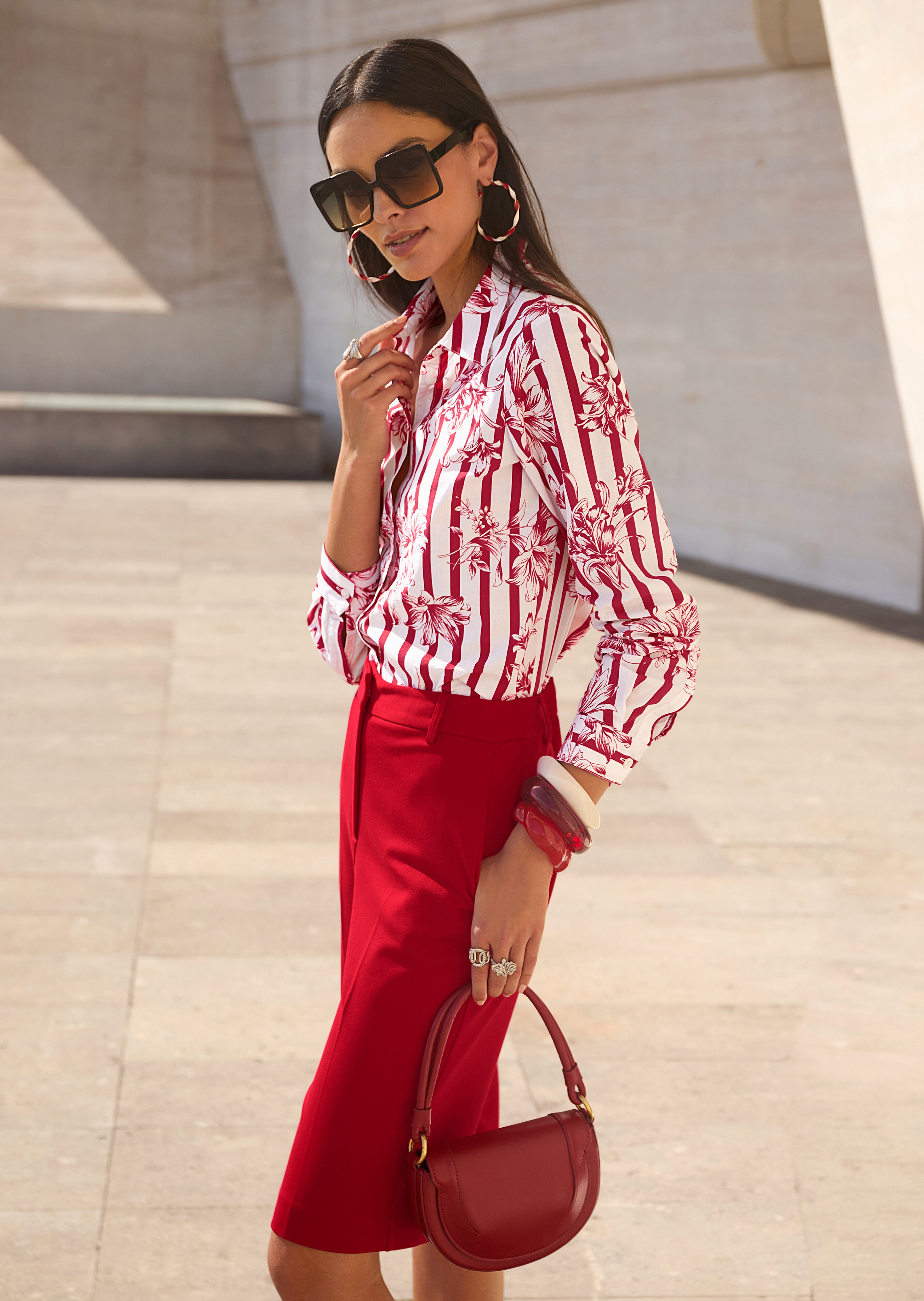 • Special print with stripes and floral motifs