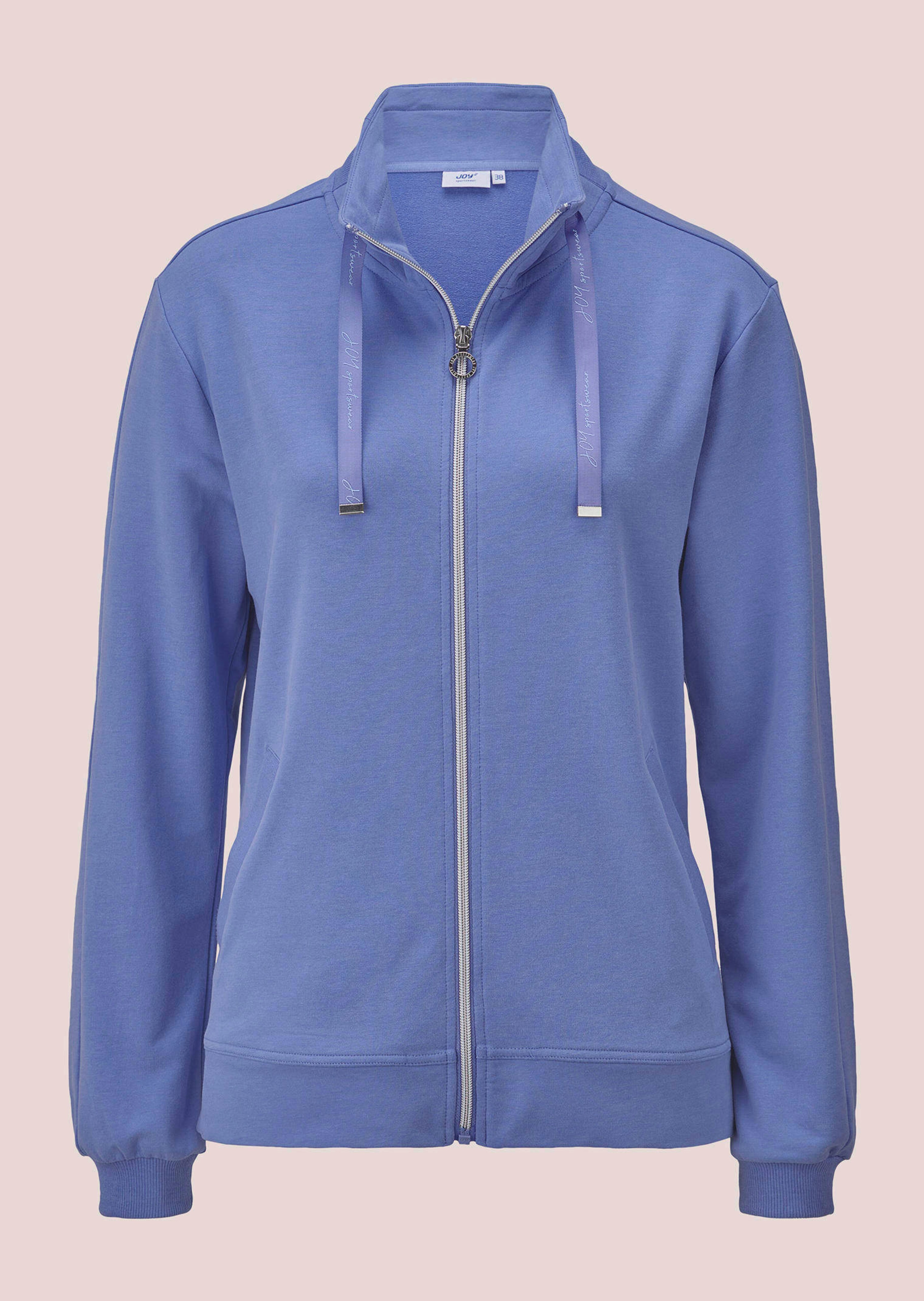 For those who love a relaxed yet stylish look: this casual jacket by JOY is crafted from a premium cotton–modal blend in soft jersey. The stand-up collar with tie detail can be styled in different ways, while the silver-coloured zip fastening and side pockets add practicality. Thoughtful touches such as panel seams on the sleeves and a wide hem highlight the quality finish. A versatile piece for both leisure and everyday wear.