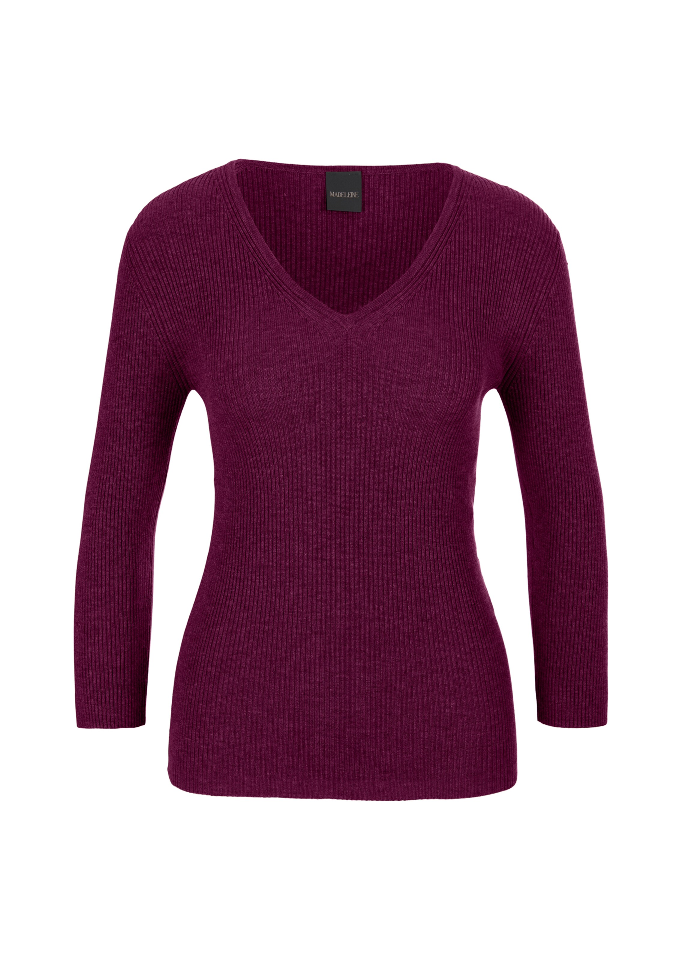 Soft, shape-retaining ribbed knit. Tailored, slim-cut jumper with 3/4-length sleeves and V-neckline.