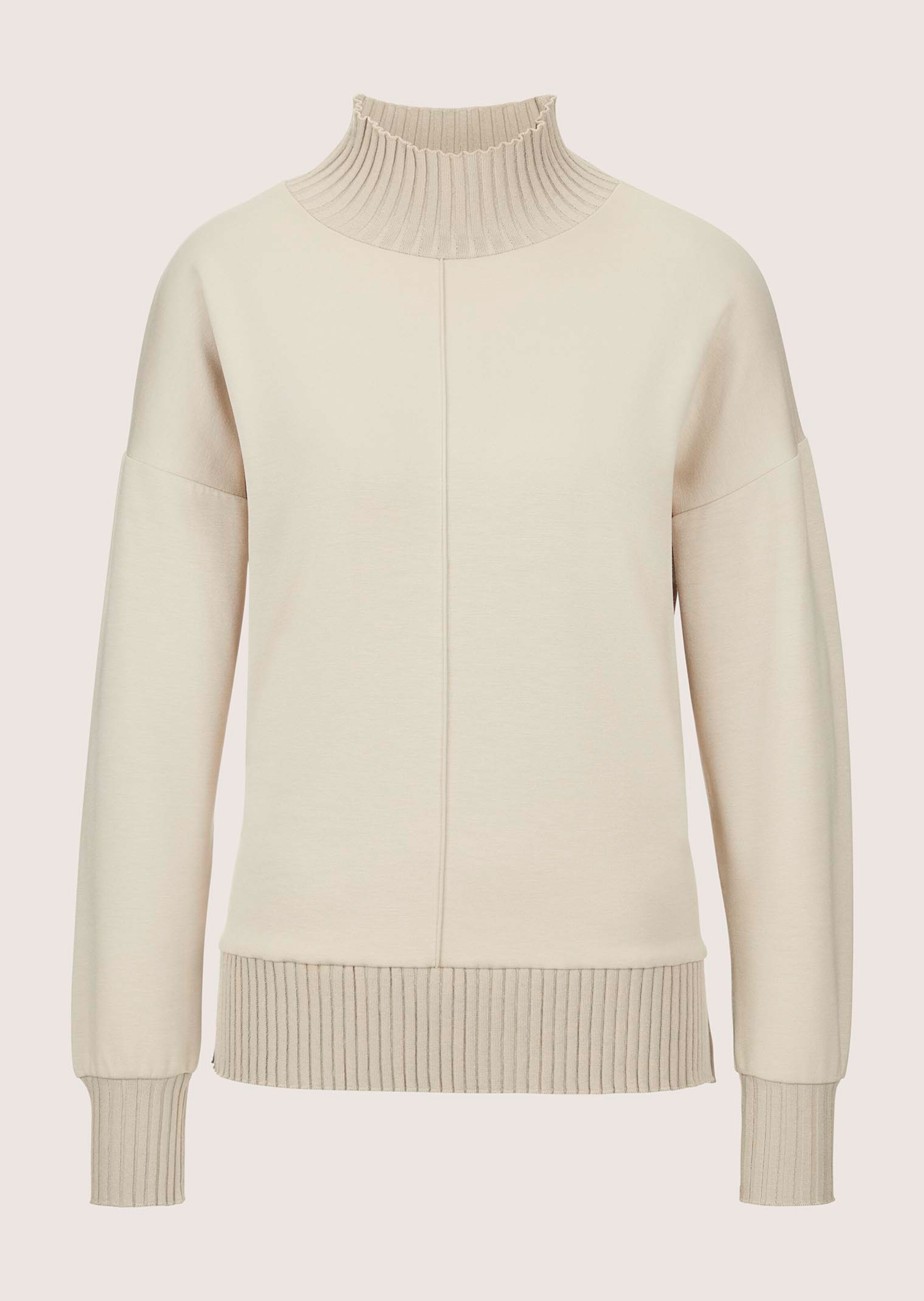Made of softly flowing interlock jersey, soft to the touch and super comfy to wear. The casual shape is accentuated by wide ribbed hems at the collar, hem and cuffs with side slits at the hem vents.