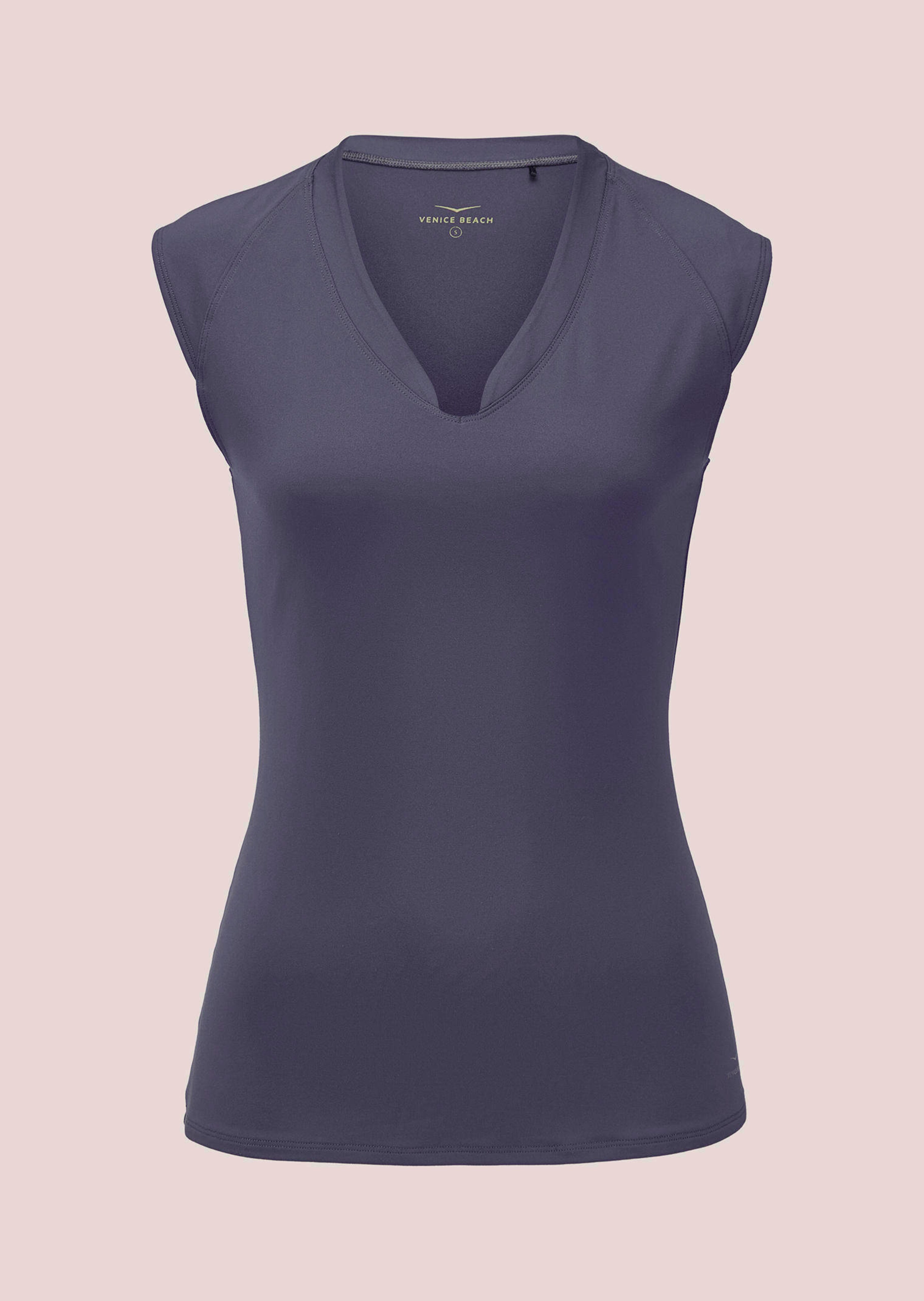 A top that effortlessly combines leisure and sportiness by VENICE BEACH. Sleeveless model with a stand-up collar that merges into a V-neckline. The dropped shoulders and soft jersey with elastane ensure freedom of movement and a comfortable fit, while the brand logo defines the style.
