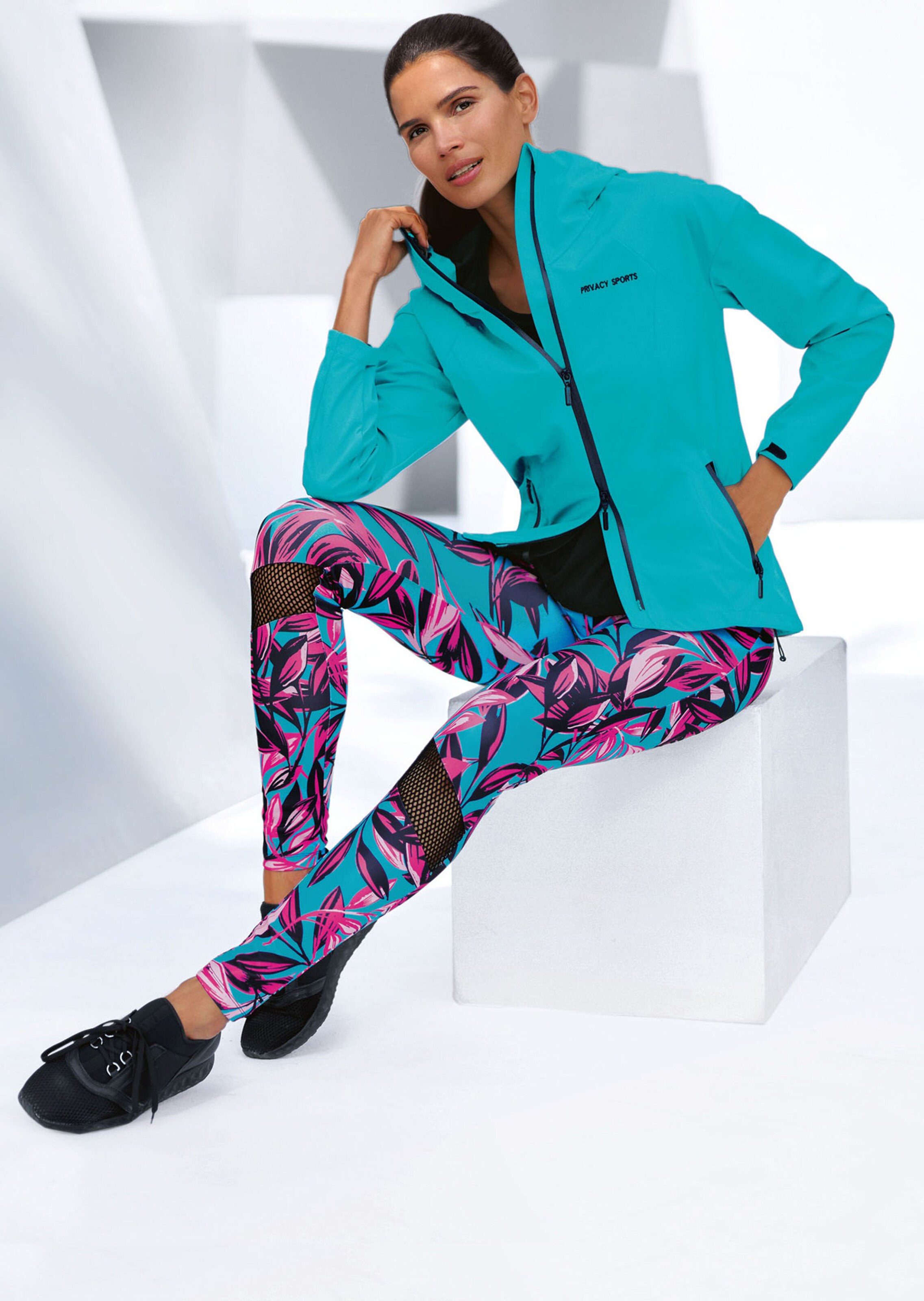 Functionally fitted with side zip pockets, 2-way zip with chin protection, long sleeves with velcro fastener, and hood with elasticated band and stoppers. Contrast-coloured embroidery on the chest section. Practical elongated back section.