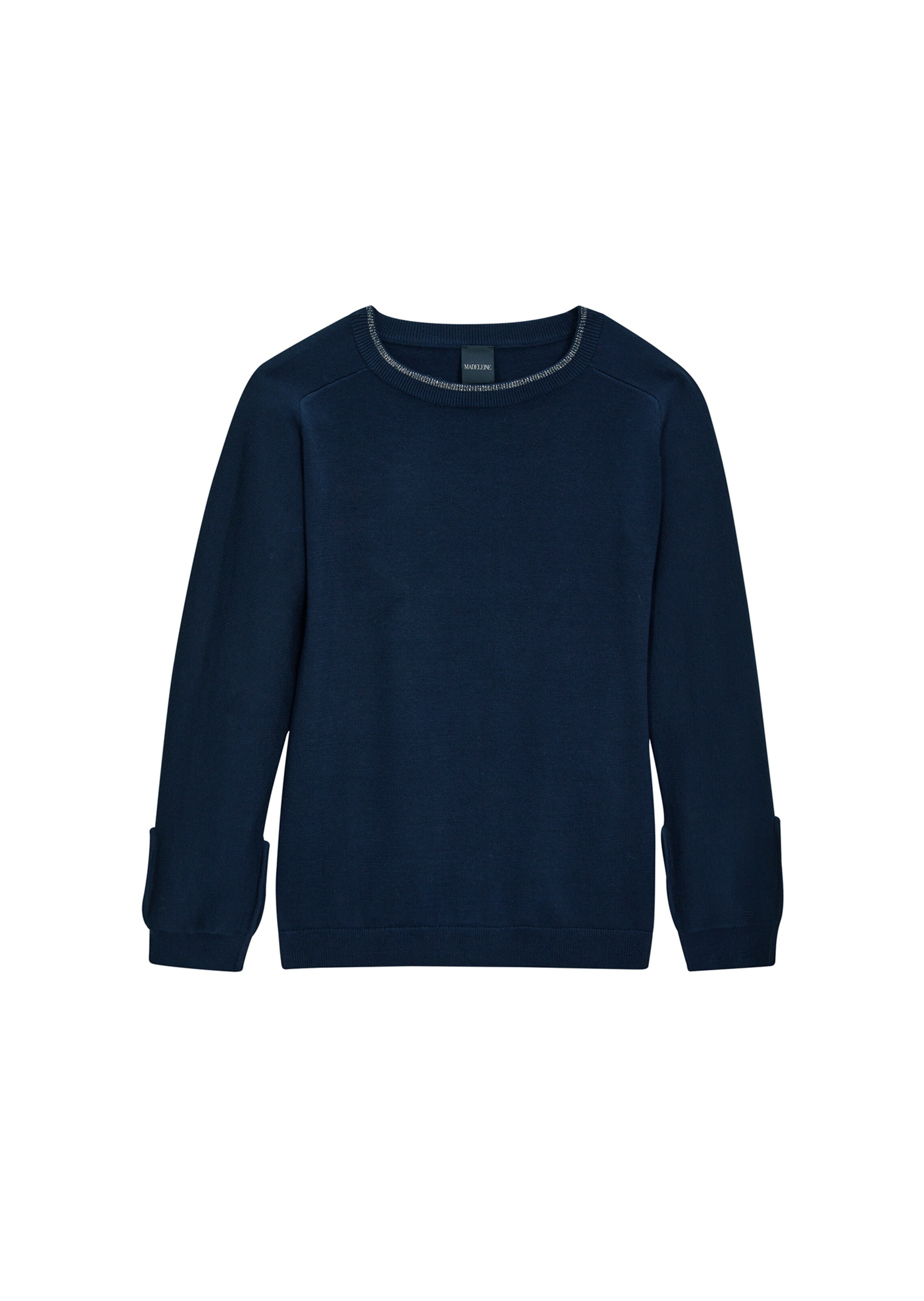 With subtle glazed yarn highlights on the boat neckline. Fine knitwear made of supima cotton. Long sleeves with sophisticated hem vent design.