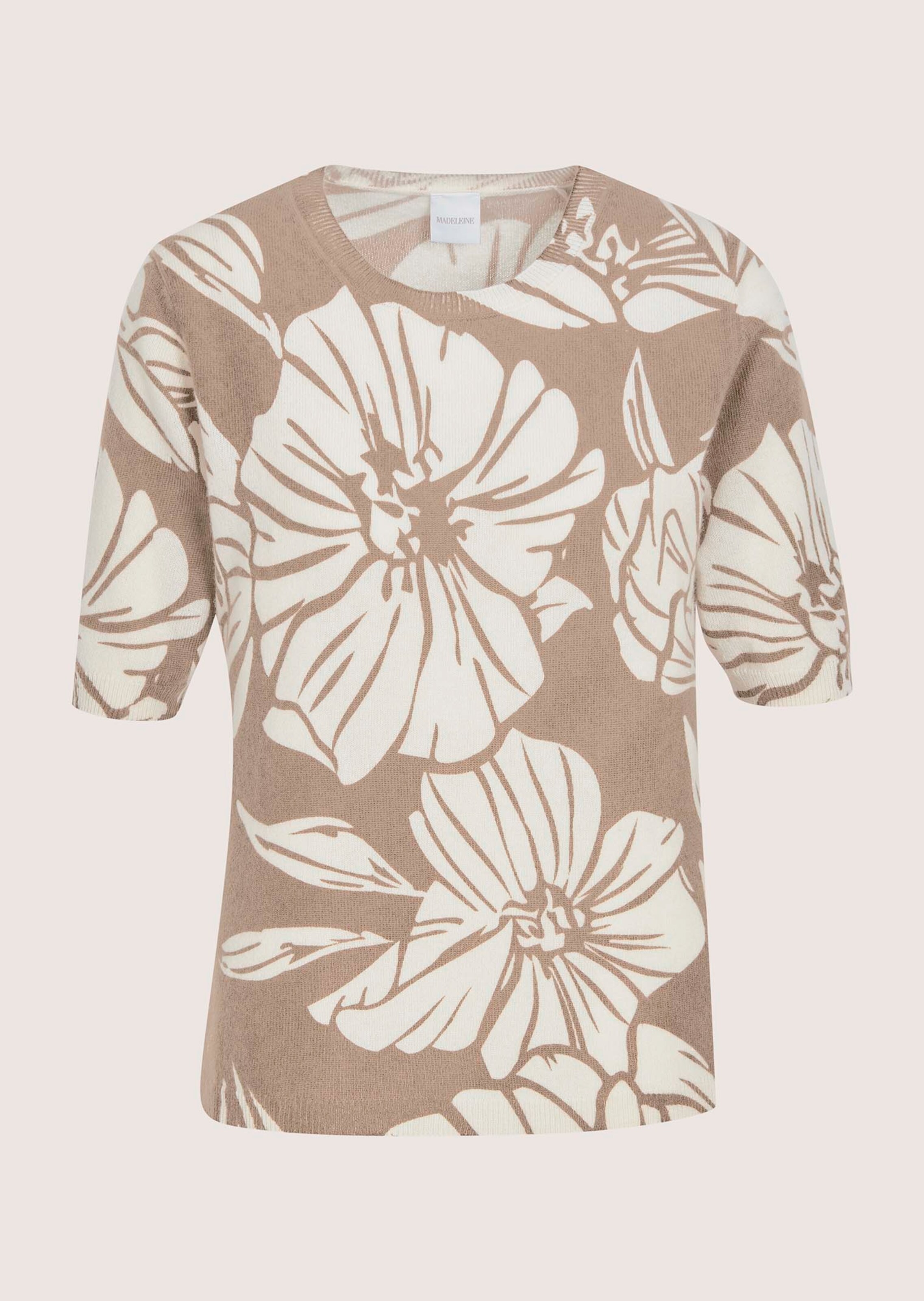 Luxurious, soft fine knit made of Good Cashmere with large, artfully positioned flowers. Round neckline and half-length sleeves with ribbed hems. Smooth knit.