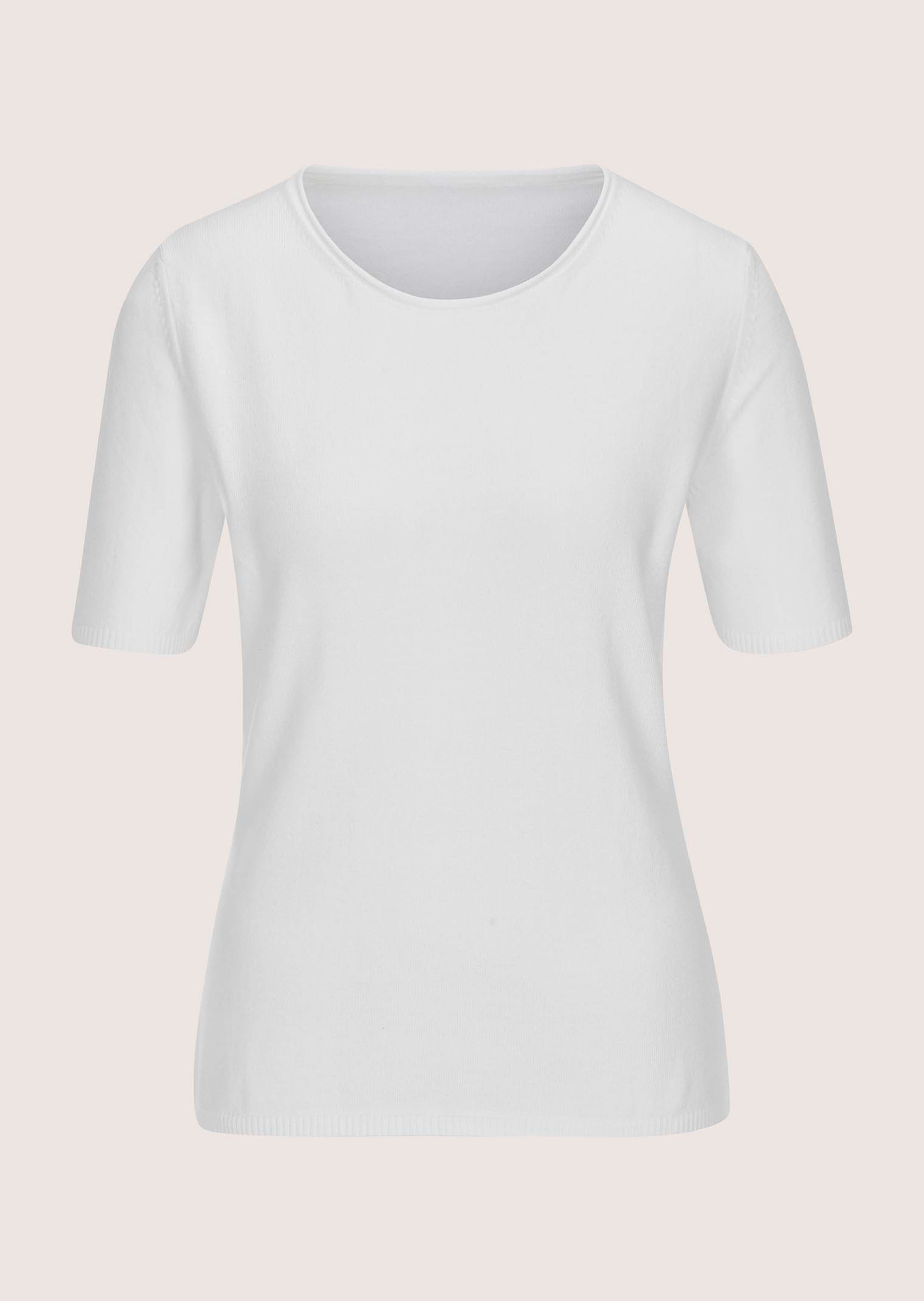 A true styling essential, this fine-knit jumper is crafted from soft, lightweight material. The round neckline with a fine rolled edge and slender ribbed edge on the cuffs and hem are complemented by half-length sleeves.