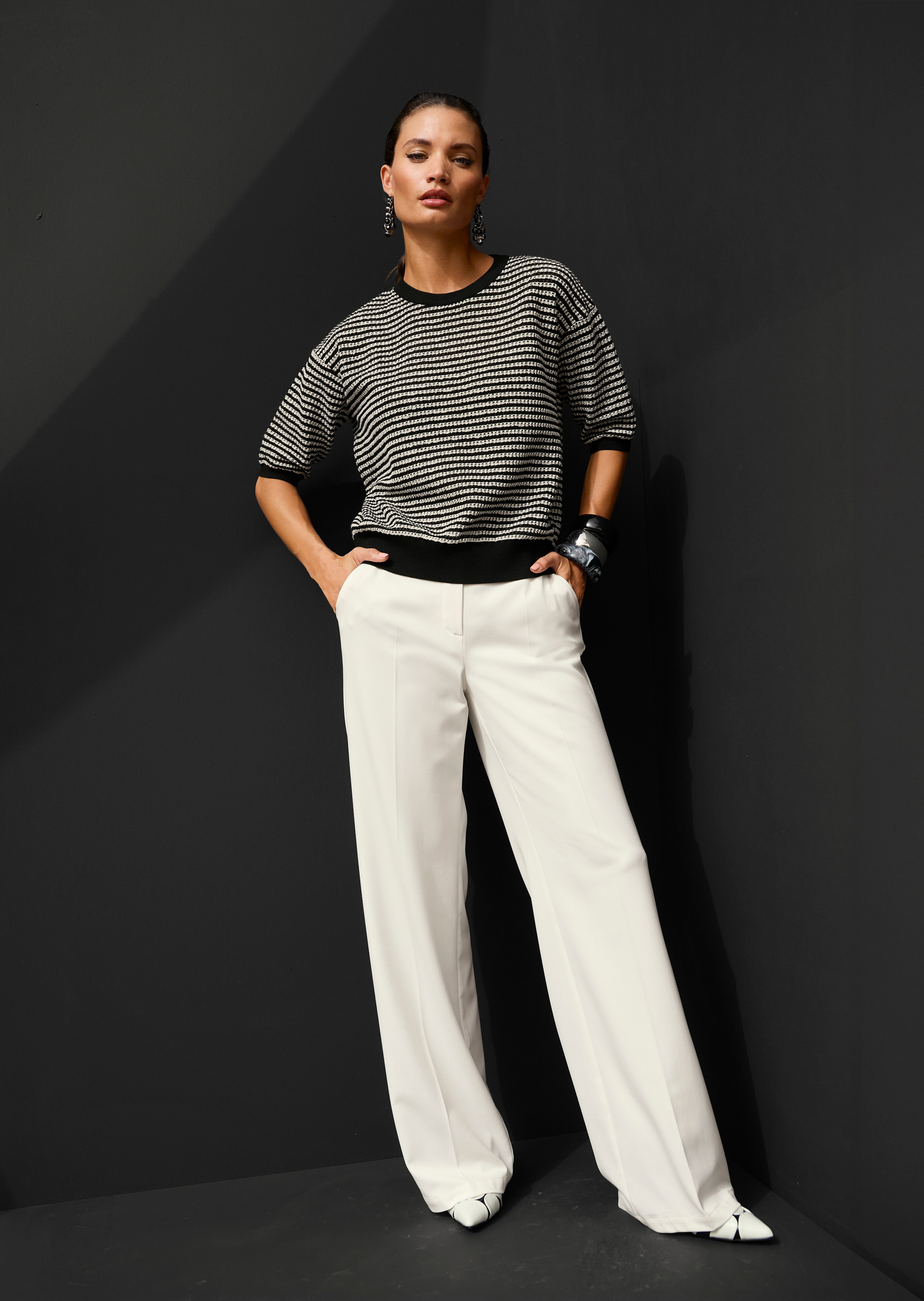 - Textured knit with stripes