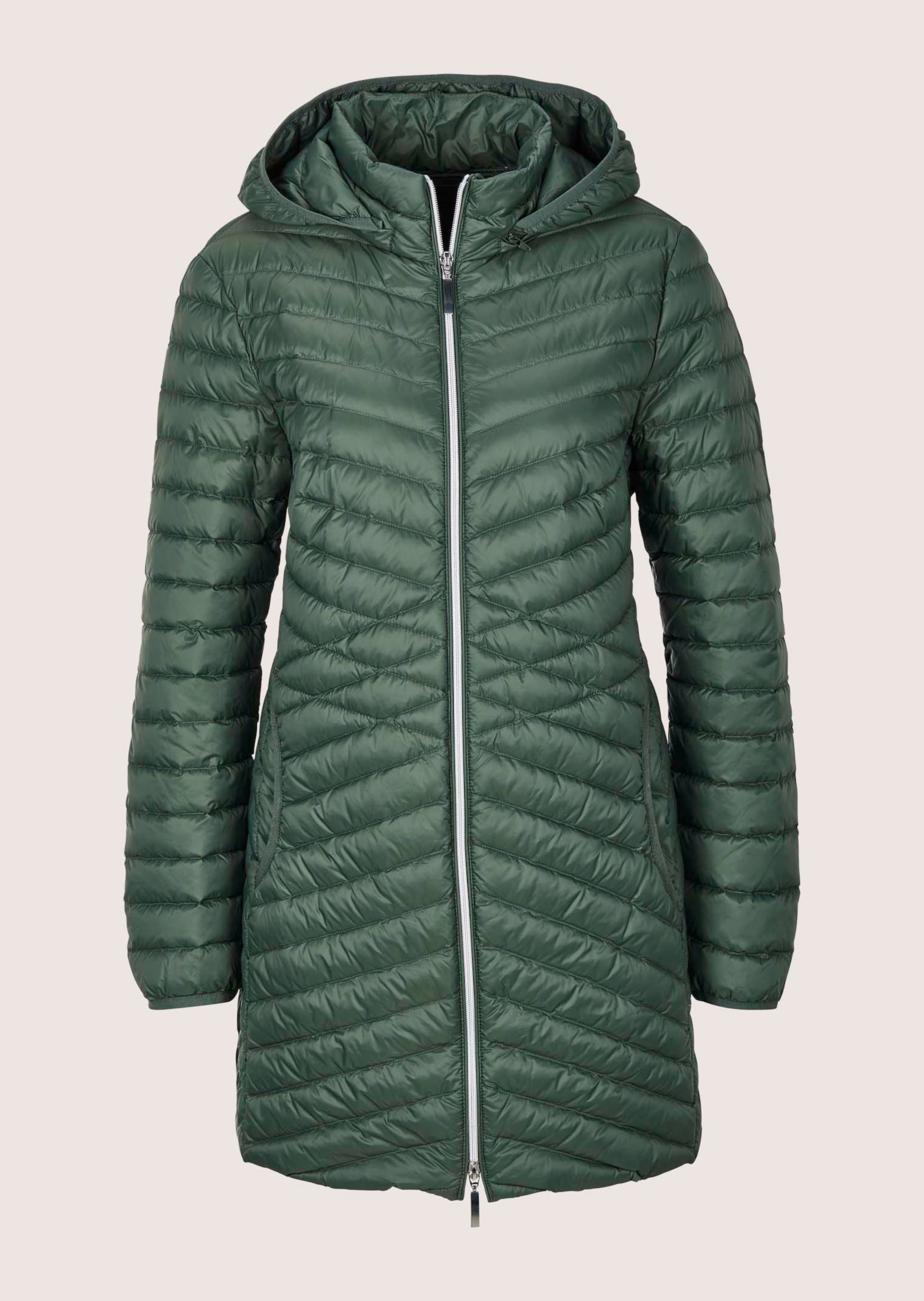 This coat with down and feather padding and figure-flattering stitching is pleasantly lightweight yet keeps you reliably warm. The longer fit with stand-up collar and hood protects against the elements, while elasticated cuffs on the hood and pockets ensure a comfortable fit. The two-way zip can also be opened from the bottom, which is particularly practical when sitting or cycling. A piece you'll want to have with you everywhere.
