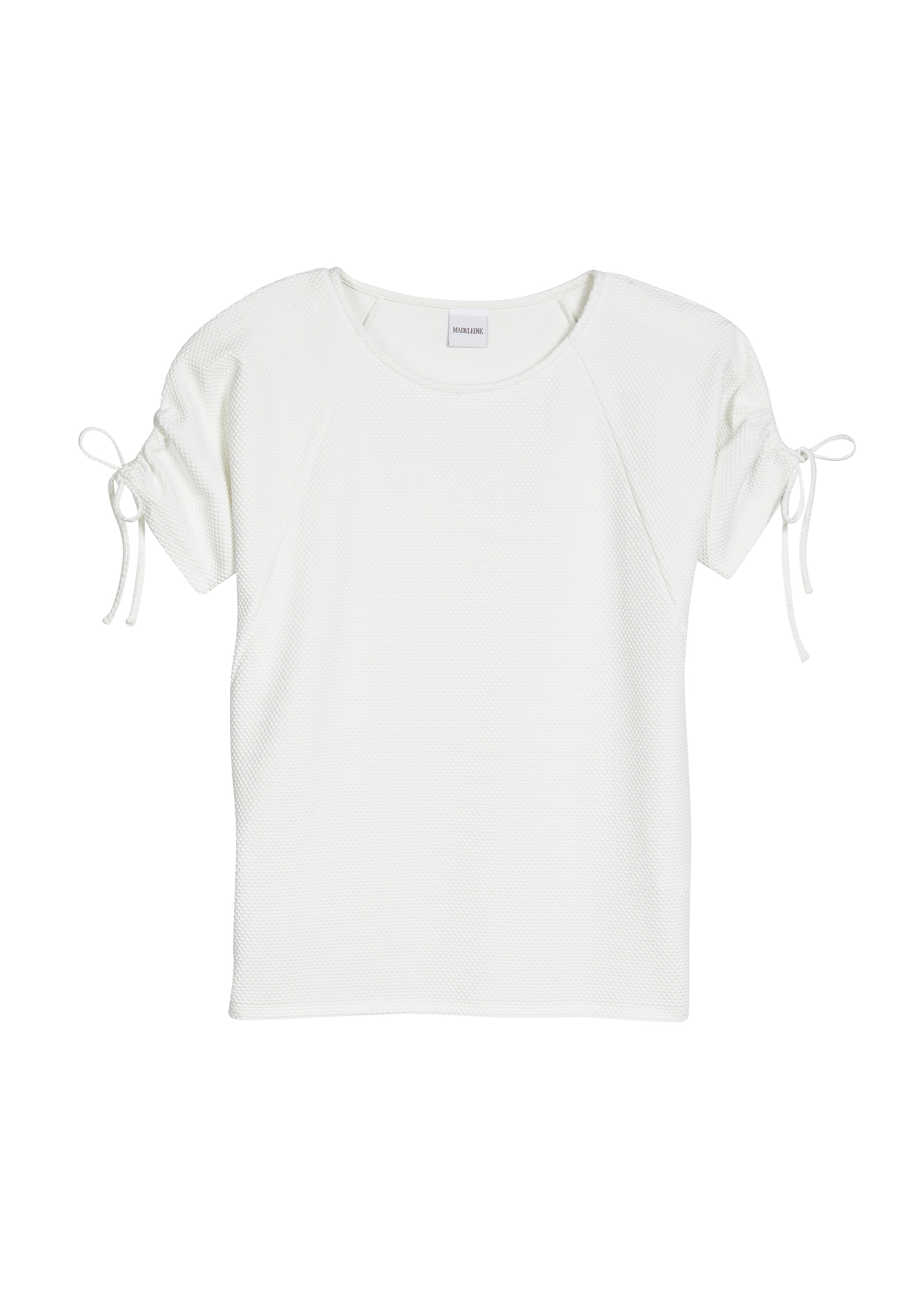 Light, textured jersey in relaxed fit with round neckline. Strikingly gathered elbow-length sleeves with decorative seam.